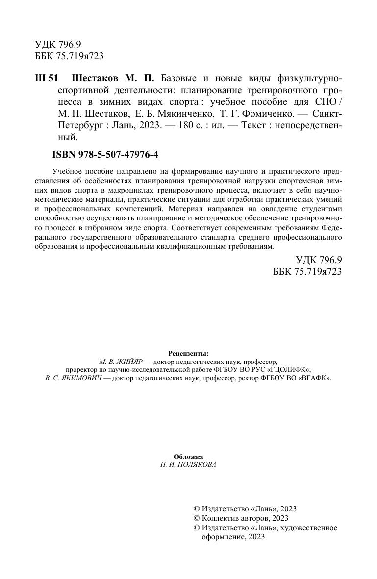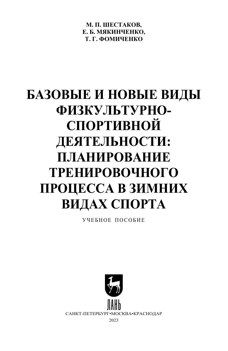 Базовые и новые виды физкультурно-спортивной деятельности: планирование тренировочного процесса в зимних видах спорта Шестаков М. П., Мякинченко Е. Б., Фомиченко Т. Г.