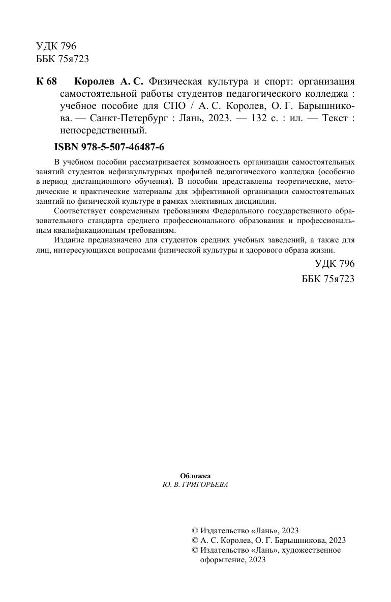 В учебном пособии рассматривается возможность организации самостоятельных занятий студентов нефизкультурных профилей педагогического колледжа (особенно в период дистанционного обучения). В пособии представлены теоретические, методические и практические материалы для эффективной организации самостоятельных занятий по физической культуре в рамках элективных дисциплин. Соответствует современным требованиям Федерального государственного образовательного стандарта среднего профессионального образования и профессиональным квалификационным требованиям. Издание предназначено для студентов средних учебных заведений, а также для лиц, интересующихся вопросами физической культуры и здорового образа жизни.