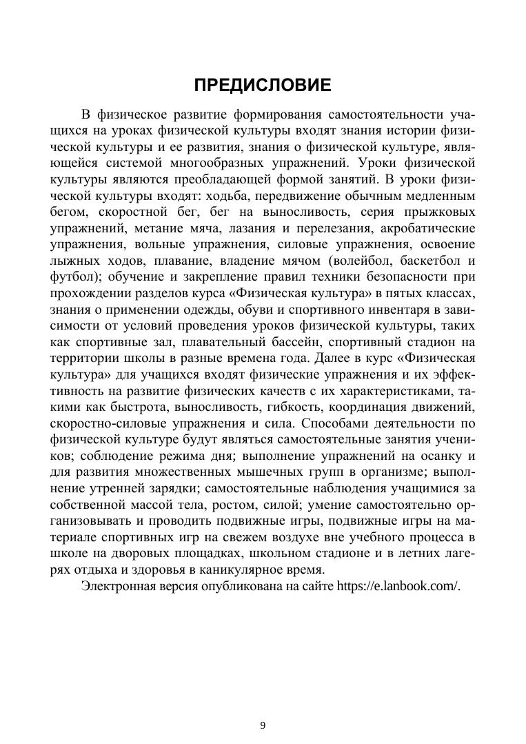 В пособии представлена структура уроков физической культуры для школьников 5 класса с развернутыми конспектами и рабочей программой. Рассмотрены предметные, метапредметные и личностные результаты школьников на уроках физической культуры, приведены нормативы, определяющие физическое развитие детей. Очерчены действующие принципы и методы физического развития в формировании самостоятельности школьников на уроках физической культуры.