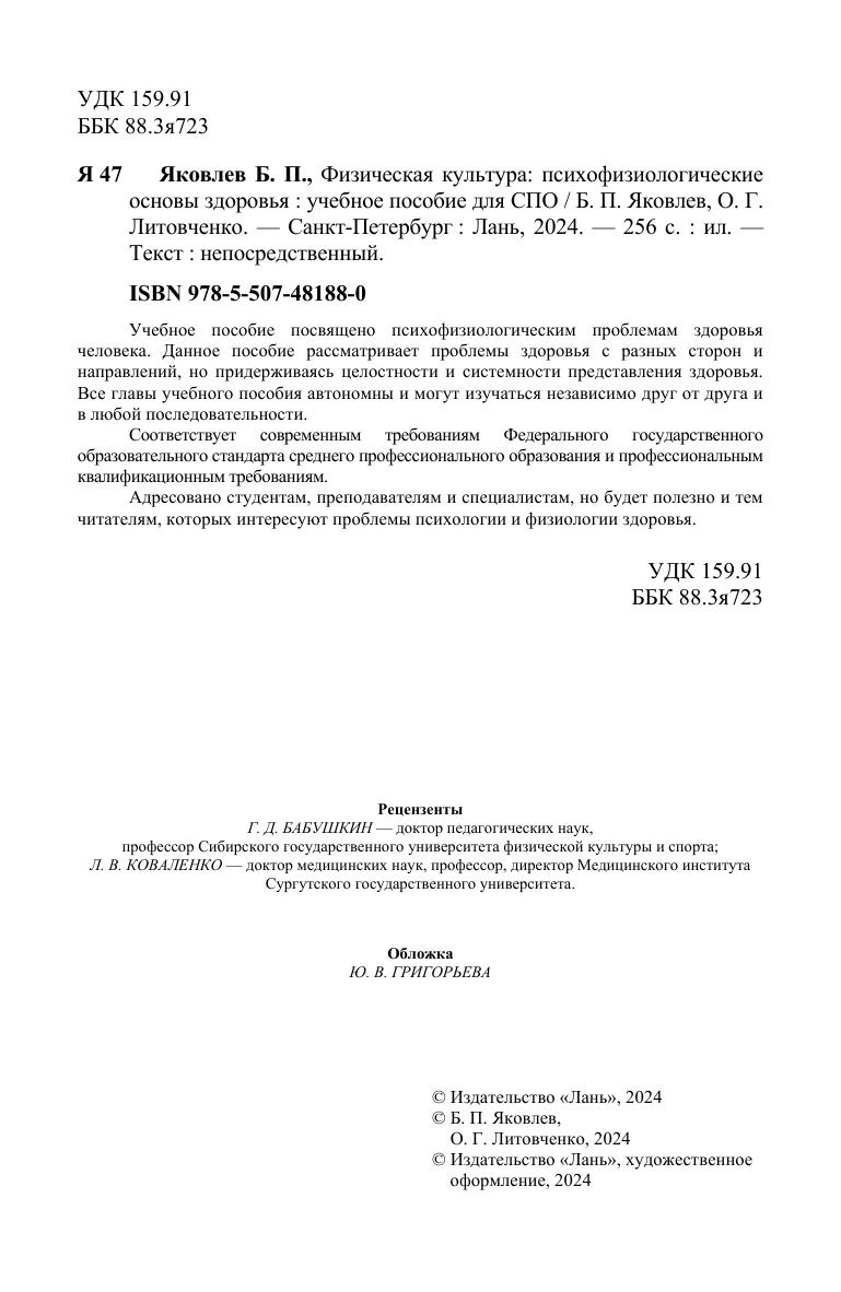 Учебное пособие посвящено психофизиологическим проблемам здоровья человека. Данное пособие рассматривает проблемы здоровья с разных сторон и направлений, но придерживаясь целостности и системности представления здоровья. Все главы учебного пособия автономны и могут изучаться независимо друг от друга и в любой последовательности. Соответствует современным требованиям Федерального государственного образовательного стандарта среднего профессионального образования и профессиональным квалификационным требованиям. Адресовано студентам, преподавателям и специалистам, но будет полезно и тем читателям, которых интересуют проблемы психологии и физиологии здоровья.