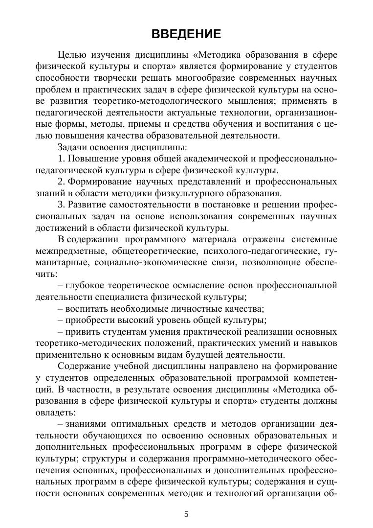 Содержание пособия направлено на формирование общих представлений о теоретико-методических основах функционирования системы высшего профессионального образования в области физической культуры, особенностях профессиональной подготовки специалистов в данной сфере и оценке его качества. В издании раскрываются порядок, логика и специфика изучения программного материала по дисциплине «Методика образования в сфере физической культуры и спорта». Пособие разработано в соответствии с требованиями Федерального государственного образовательного стандарта высшего образования для обучающихся по направлению «Педагогическое образование», направленность (профиль) «Физическая культура и спорт». Предназначено для преподавателей и студентов факультетов, институтов, университетов физической культуры.