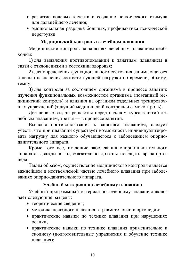 В учебном пособии рассмотрены возможные нарушения опорно-двигательного аппарата, а также вопросы применения элементов лечебной физической культуры и лечебного плавания в занятиях со студентами подготовительных и специальных медицинских групп. На основе анализа лечебного дозированного плавания в пособие включены комплексы специальных плавательных упражнений с использованием различных стилей плавания и их элементов. Главное внимание уделено методике построения занятий и применению специальных средств физической культуры для профилактики и уменьшения нарушений опорно-двигательного аппарата. Соответствует современным требованиям Федерального государственного образовательного стандарта среднего профессионального образования и профессиональным квалификационным требованиям. Для студентов образовательных учреждений среднего профессионального образования, преподавателей и всех интересующихся данной проблемой.