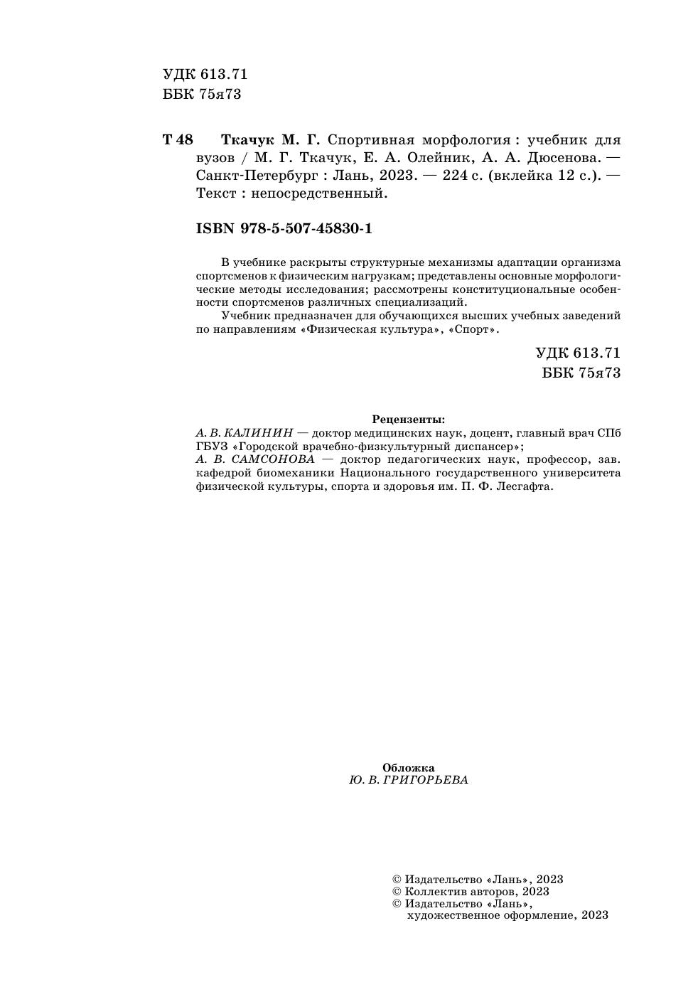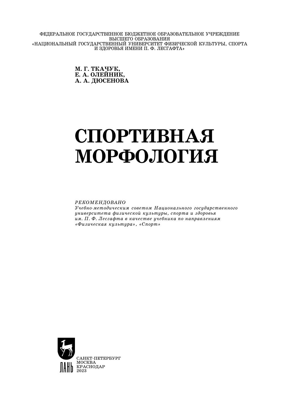 В учебнике раскрыты структурные механизмы адаптации организма спортсменов к физическим нагрузкам, представлены основные морфологические методы исследования, рассмотрены конституциональные особенности спортсменов различных специализаций. Учебник предназначен для обучающихся высших учебных заведений по направлениям «Физическая культура», «Спорт».