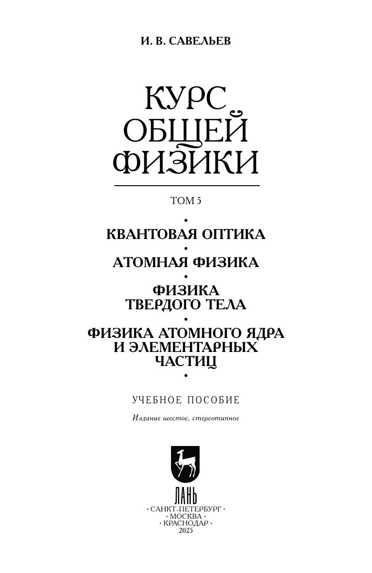 Курс общей физики. В 5 томах. Том 5. Квантовая оптика. Атомная физика. Физика твердого тела. Физика атомного ядра и элементарных частиц