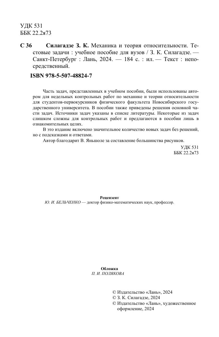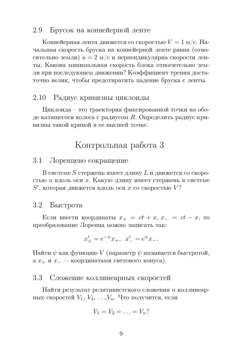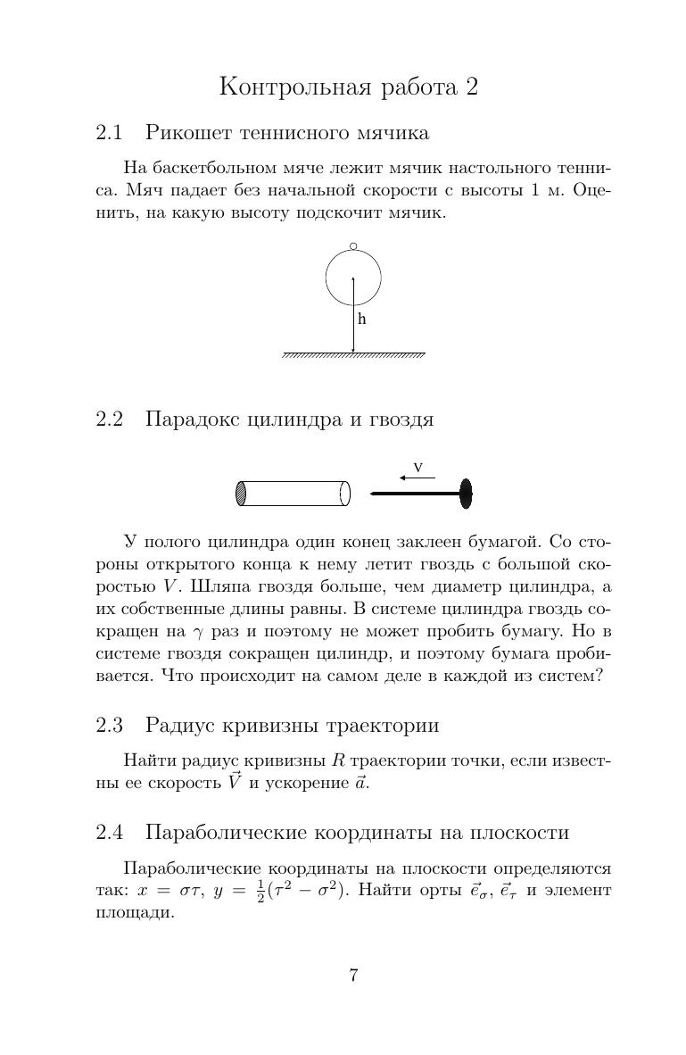 Часть задач, представленных в учебном пособии, были использованы авто-ром для недельных контрольных работ по механике и теории относительности для студентов-первокурсников физического факультета Новосибирского госу-дарственного университета. В пособии также приведены решения основной ча-сти задач. Источники задач указаны в списке литературы. Некоторые из задач слишком сложны для контрольных работ и предлагаются в пособии лишь в ознакомительных целях. В это издание включено значительное количество новых задач без реше-ний, но с подсказками и ответами. Автор благодарит В. Яньшоле за составление большинства рисунков