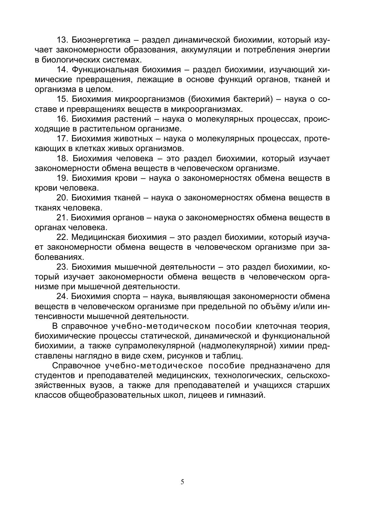 Клеточная теория, биохимические процессы статической, динамической и функциональной биохимии, а также супрамолекулярной (надмолекулярной) химии представлены наглядно в виде схем, рисунков и таблиц. Справочное учебно-методическое пособие предназначено для студентов и преподавателей биологических, химических, медицинских, технологических, сельскохозяйственных вузов, а также для преподавателей старших классов общеобразовательных школ, лицеев и гимназий.