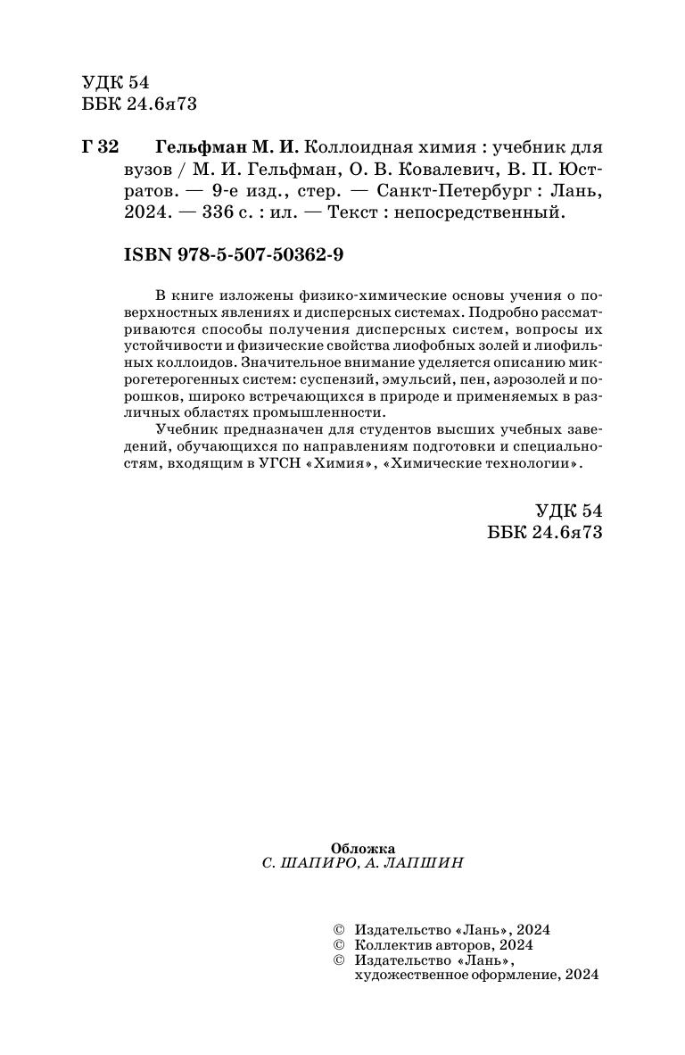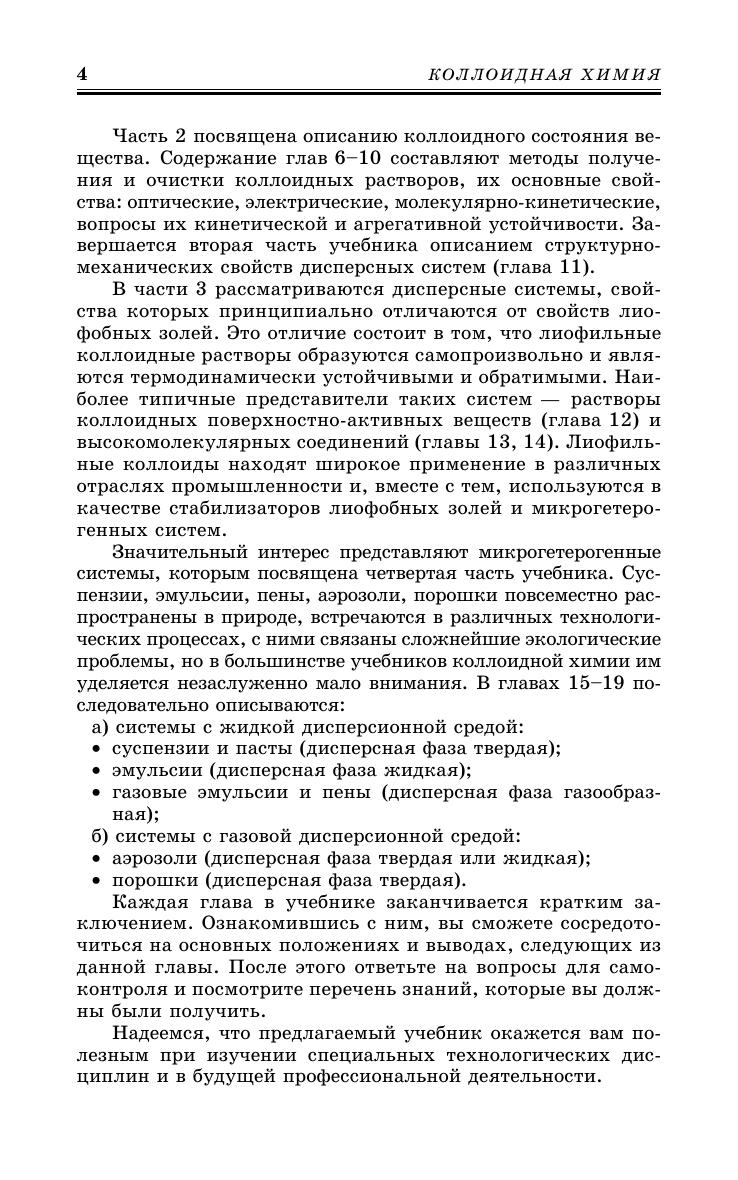 В книге изложены физико-химические основы учения о поверхностных явлениях и дисперсных системах. Подробно рассматриваются способы получения дисперсных систем, вопросы их устойчивости и физические свойства лиофобных золей и лиофильных коллоидов. Значительное внимание уделяется описанию микрогетерогенных систем: суспензий, эмульсий, пен, аэрозолей, порошков, широко встречающихся в природе и применяемых в различных областях промышленности. Предназначается для студентов технологических высших учебных заведений.