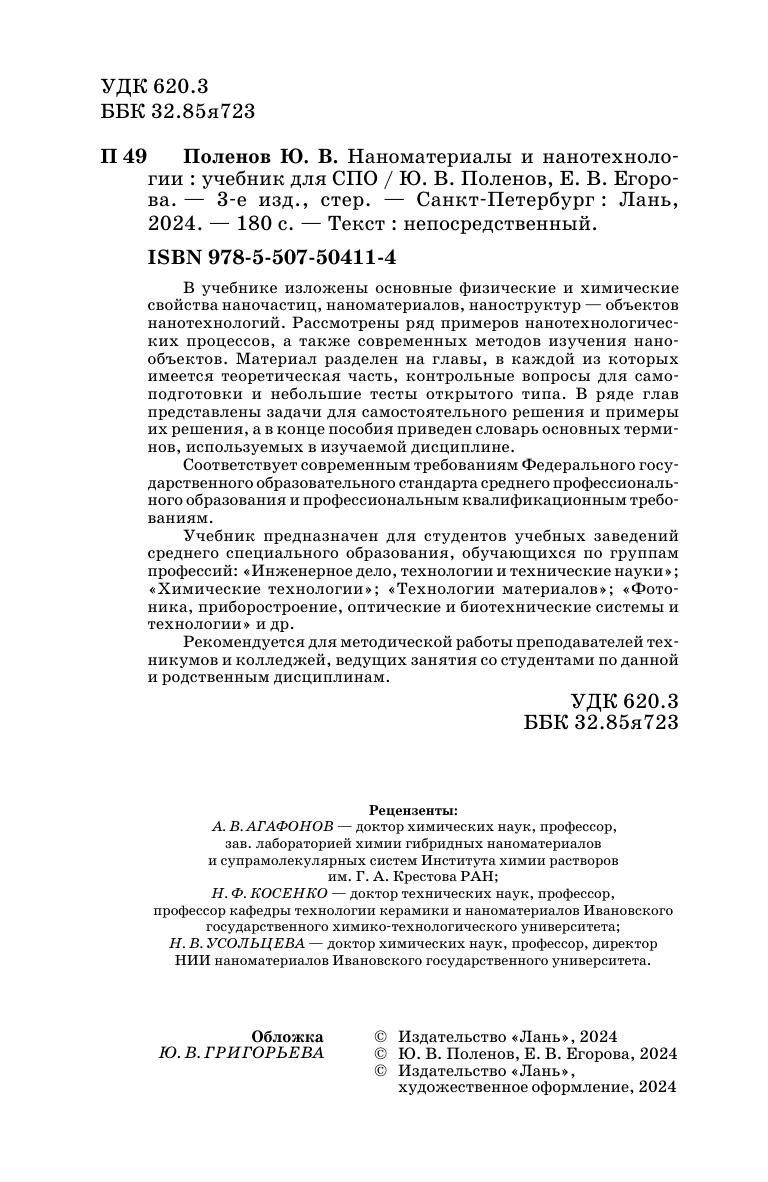 В учебнике изложены основные физические и химические свойства наночастиц, наноматериалов, наноструктур - объектов нанотехнологий. Рассмотрены ряд примеров нанотехнологических процессов, а также современных методов изучения нанообъектов. Материал разделен на главы, в каждой из которых имеется теоретическая часть, контрольные вопросы для самоподготовки и небольшие тесты открытого типа. В ряде глав представлены задачи для самостоятельного решения и примеры их решения, а в конце пособия приведен словарь основных терминов, используемых в изучаемой дисциплине.Учебник предназначен для студентов учебных заведений среднего специального образования, обучающихся по группам профессий: «Инженерное дело, технологии и технические науки», «Химические технологии», «Технологии материалов», «Фотоника, приборостроение, оптические и биотехнические системы и технологии» и др. Соответствует современным требованиям Федерального государственного образовательного стандарта среднего профессионального образования и профессиональным квалификационным требованиям. Рекомендуется для методической работы преподавателей техникумов и колледжей, ведущих занятия со студентами по данной и родственным дисциплинам.