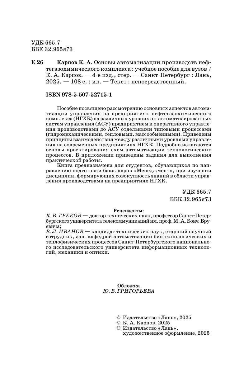Пособие посвящено рассмотрению основных аспектов автоматизации управления на предприятиях нефтегазохимического комплекса (НГХК) на различных уровнях: от автоматизированных систем управления (АСУ) предприятием и оперативного управления производствами до АСУ отдельными типовыми процессами (гидромеханическими, тепловыми, массообменными). Приведены принципы взаимодействия между различными уровнями управления на современных предприятиях НГХК. Подробно излагаются основы проектирования схем автоматизации технологических процессов. В приложении приведены задания для выполнения практической работы. Книга предназначена для студентов, обучающихся по направлению подготовки бакалавров «Менеджмент», при изучении дисциплин, формирующих совокупность знаний в области управления производствами на предприятиях НГХК.