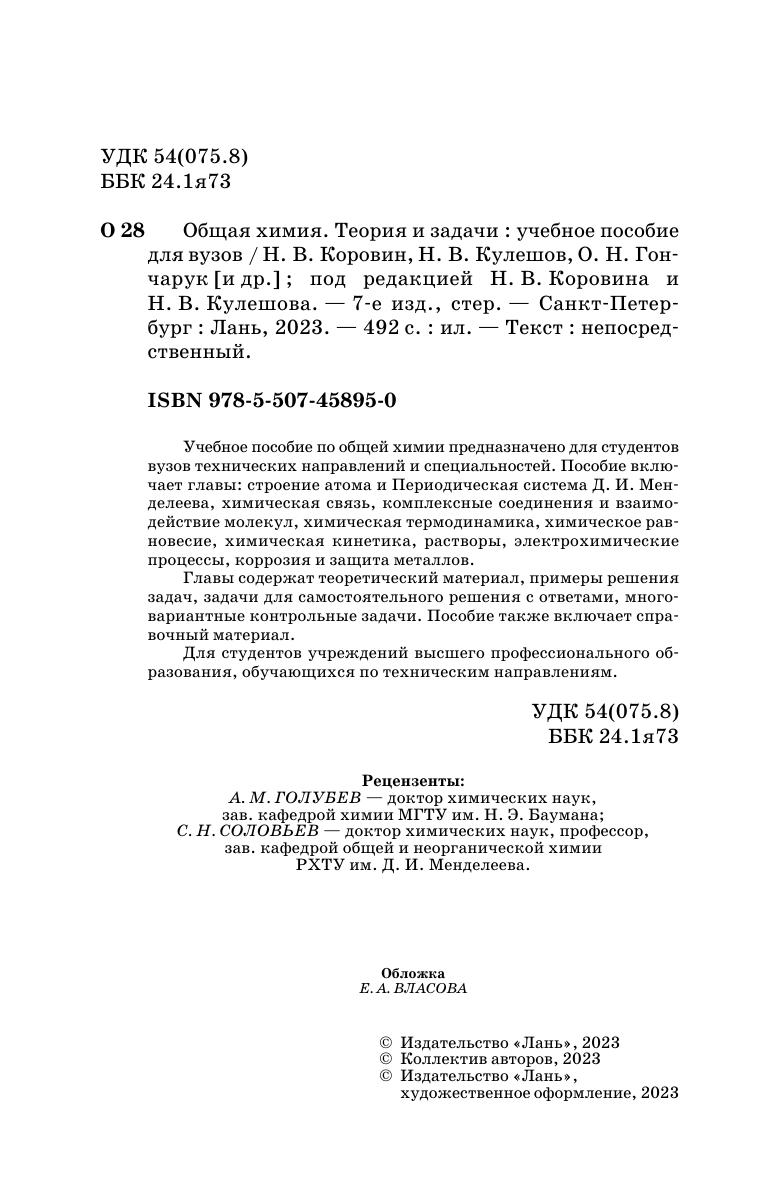 Учебное пособие по общей химии предназначено для студентов вузов технических направлений и специальностей. Пособие включает главы: строение атома и периодическая система Д. И. Менделеева, химическая связь, комплексные соединения и взаимодействие молекул, химическая термодинамика, химическое равновесие, химическая кинетика, растворы, электрохимические процессы, коррозия и защита металлов. Главы содержат теоретический материал, примеры решения задач, задачи для самостоятельного решения с ответами, многовариантные контрольные задачи. Пособие также включает справочный материал. Для студентов учреждений высшего профессионального образования, обучающихся по техническим направлениям.