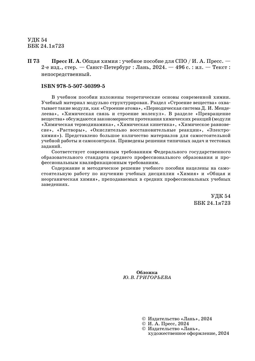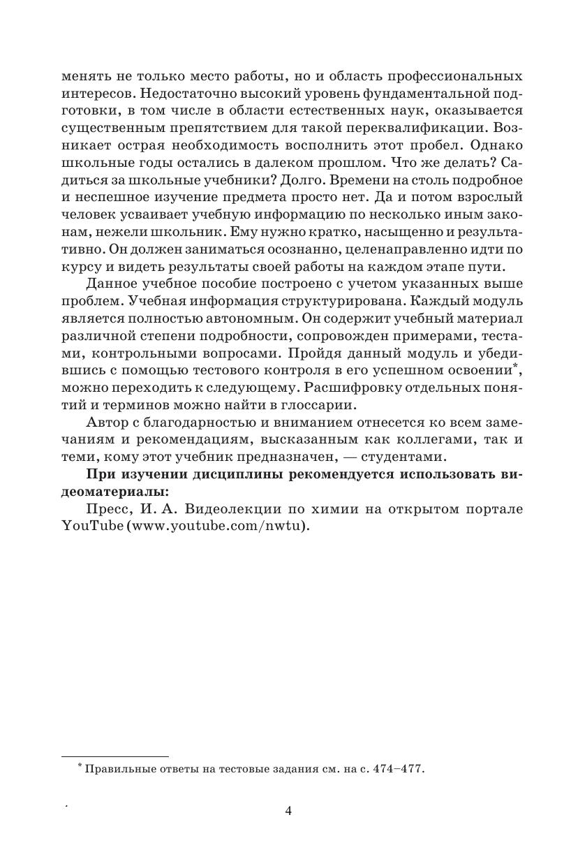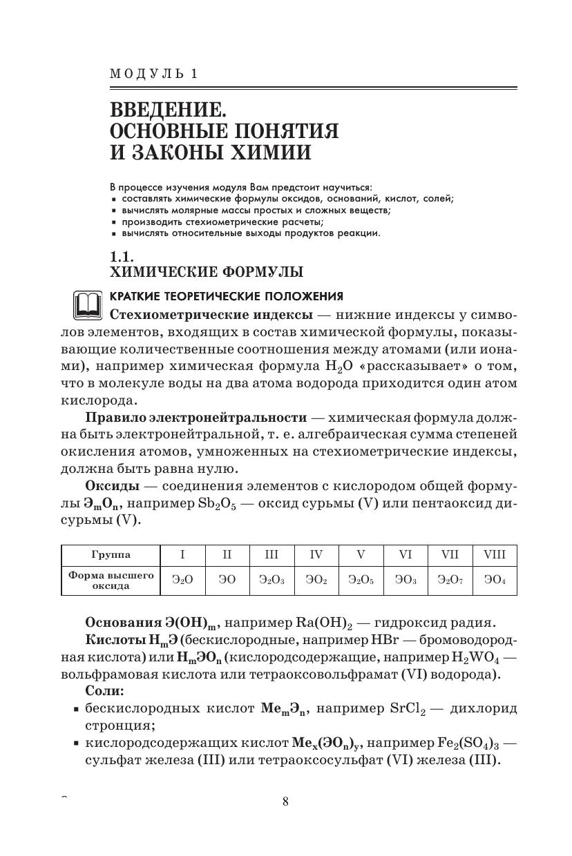 В учебном пособии изложены теоретические основы современной химии. Учебный материал модульно структурирован. Раздел «Строение вещества» охватывает такие модули, как «Строение атома», «Периодическая система Д. И. Менделеева», «Химическая связь и строение молекул». В разделе «Превращение вещества» обсуждаются закономерности протекания химических реакций (модули «Химическая термодинамика», «Химическая кинетика», «Химическое равновесие», «Растворы», «Окислительно восстановительные реакции», «Электрохимия»). Представлено большое количество материалов для самостоятельной учебной работы и самоконтроля. Приведены решения типичных задач и тестовых заданий. Соответствует современным требованиям Федерального государственного образовательного стандарта среднего профессионального образования и профессиональным квалификационным требованиям. Cодержание и методическое решение учебного пособия нацелены на самостоятельную работу по изучению учебных дисциплин «Химия» и «Общая и неорганическая химия», преподаваемых в средних профессиональных учебных заведениях.