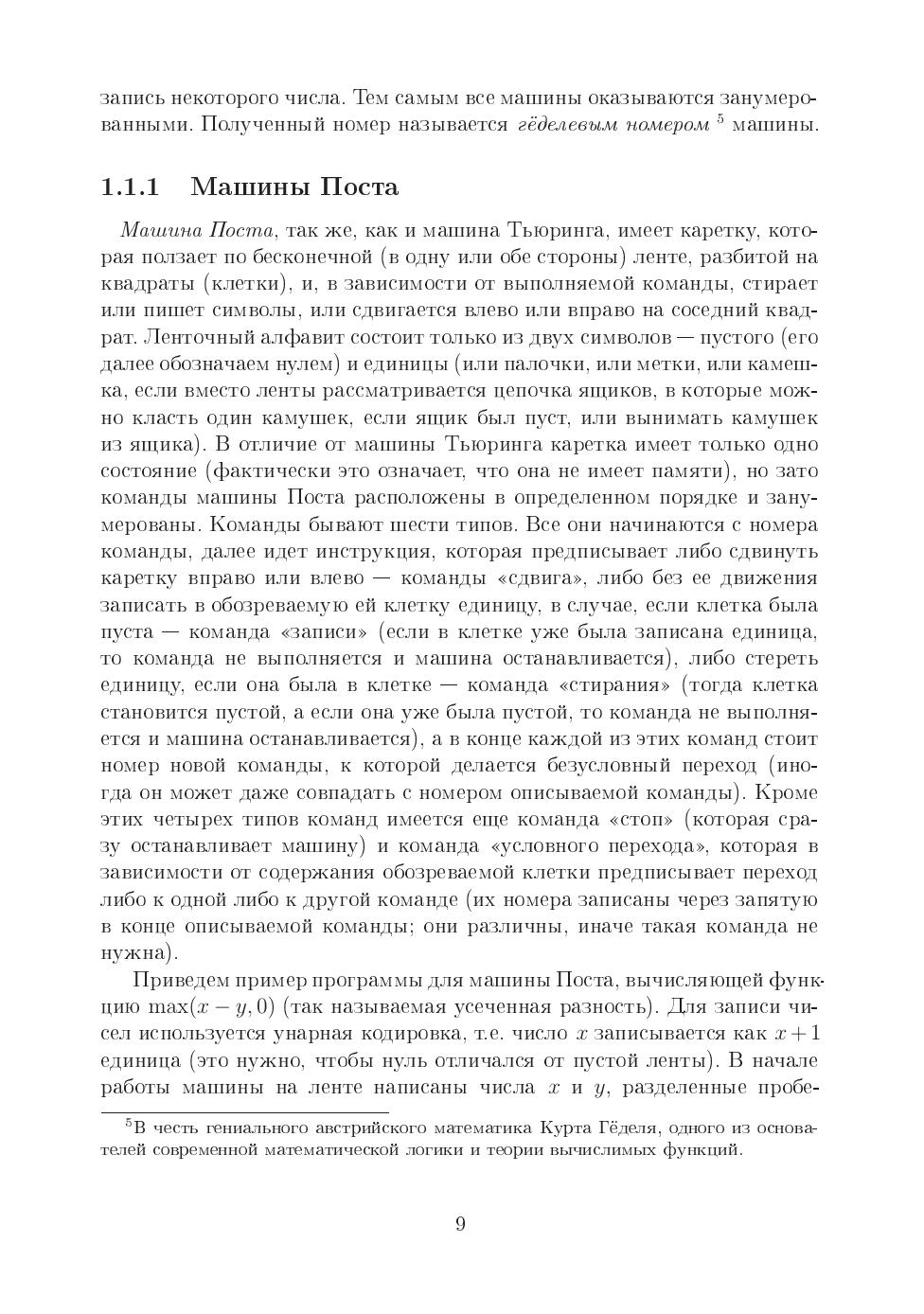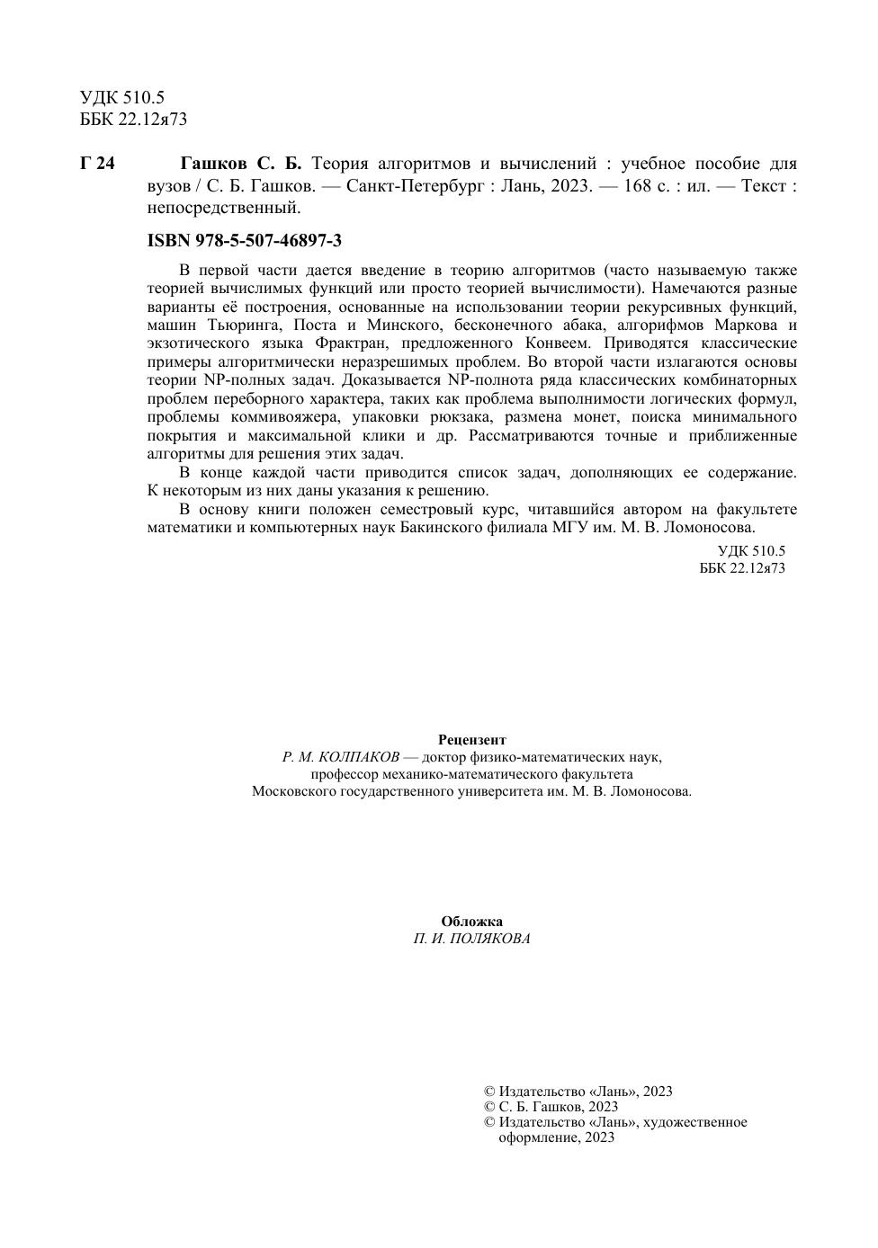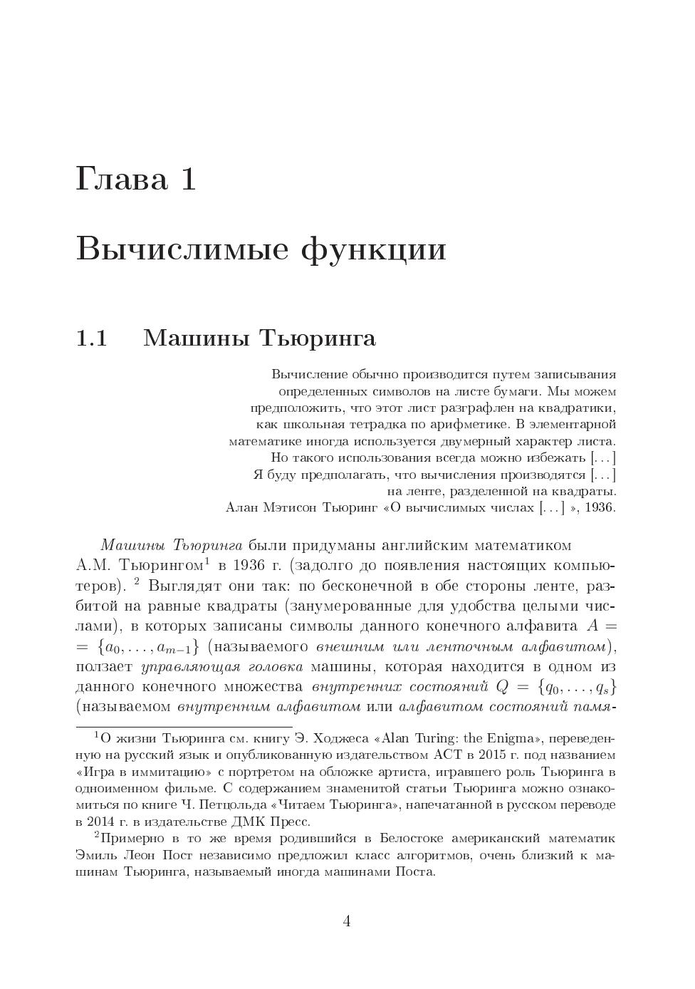 В первой части дается введение в теорию алгоритмов (часто называемую также теорией вычислимых функций или просто теорией вычислимости). Намечаются разные варианты её построения, основанные на использовании теории рекурсивных функций, машин Тьюринга, Поста и Минского, бесконечного абака, алгорифмов Маркова и экзотического языка Фрактран, предложенного Конвеем. Приводятся классические примеры алгоритмически неразрешимых проблем. Во второй части излагаются основы теории NP-полных задач. Доказывается NP-полнота ряда классических комбинаторных проблем переборного характера, таких как проблема выполнимости логических формул, проблемы коммивояжера, упаковки рюкзака, размена монет, поиска минимального покрытия и максимальной клики и др. Рассматриваются точные и приближенные алгоритмы для решения этих задач. В конце каждой части приводится список задач, дополняющих ее содержание. К некоторым из них даны указания к решению. В основу книги положен семестровый курс, читавшийся автором на факультете математики и компьютерных наук Бакинского филиала МГУ им. М. В. Ломоносова.