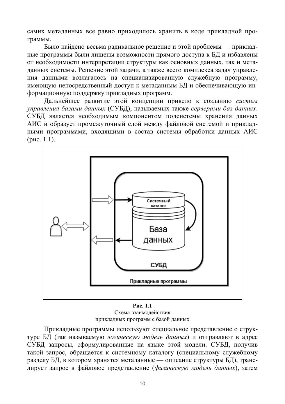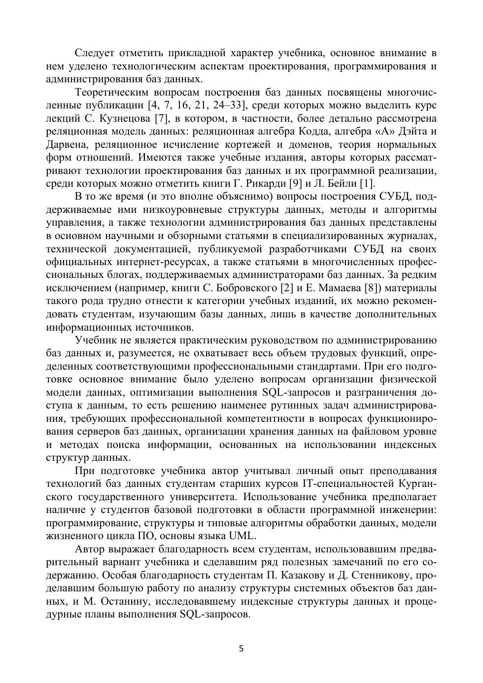 Базы данных — одно из направлений IT-индустрии, в рамках которого традиционно рассматриваются технологии надежного хранения больших объемов информации, ее эффективного поиска и извлечения по запросам потребителей. Материал, представленный в учебнике, охватывает основные фазы жизненного цикла базы данных: последовательно обсуждаются основные концепции, проблематика и элементы теории баз данных, рассматриваются процессы их проектирования, программирования и управления, а также технологии администрирования баз данных с целью достижения высокой производительности доступа к данным и обеспечения требуемого уровня информационной безопасности. База данных рассматривается как информационная модель предметной области, а ее разработка — как многоэтапный процесс последовательного преобразования концептуальной модели в логическую (реляционную) модель данных на стадии проектирования, последующей программной реализации логической модели средствами языка SQL и настройки параметров физической модели в процессе эксплуатации базы данных. Основное внимание уделено прикладным аспектам технологий баз данных, изложение материала сопровождается многочисленными примерами и листингами программного SQL-кода, а также практическими заданиями по проектированию, программированию и администрированию баз данных для самостоятельного выполнения. Учебник предназначен для студентов IT-специальностей, обучающихся по программам среднего специального образования, и может быть использован преподавателями при подготовке лекционных курсов, проведении практических и лабораторных занятий, курсовом проектировании.