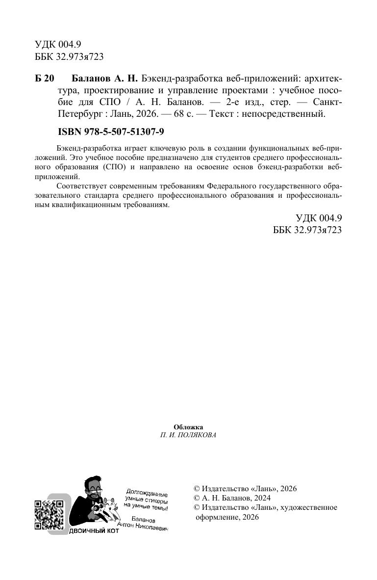 Бэкенд-разработка играет ключевую роль в создании функциональных веб-приложений. Это учебное пособие предназначено для студентов среднего профессионального образования (СПО) и направлено на освоение основ бэкенд-разработки веб-приложений. Соответствует современным требованиям Федерального государственного образовательного стандарта среднего профессионального образования и профессиональным квалификационным требованиям.