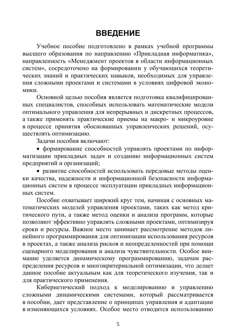 В учебном пособии освещены современные методы и инструменты, используемые для анализа данных и управления проектами в информационных системах. Внимание уделено интеграции теоретических знаний и практических навыков в области математического моделирования, сетевого планирования и оптимизации ресурсов, позволяя эффективно решать задачи управления проектами и принятия решений в условиях цифровой экономики. В пособии рассматриваются метод критического пути, оценки и анализа программ, линейное программирование и сценарный анализ. Значительная часть материала посвящена роли аналитических методов и моделей для оценки рисков, прогнозирования и стратегического планирования в управлении проектами, а также применению программных средств для внедрения математических моделей в информационные системы управления. Пособие предназначено для студентов, обучающихся по направлениям подготовки «Прикладная информатика», «Менеджмент проектов в области информационных систем», а также для аспирантов, преподавателей и профессионалов, работающих в области управления проектами и цифровой трансформации в условиях информационных систем.