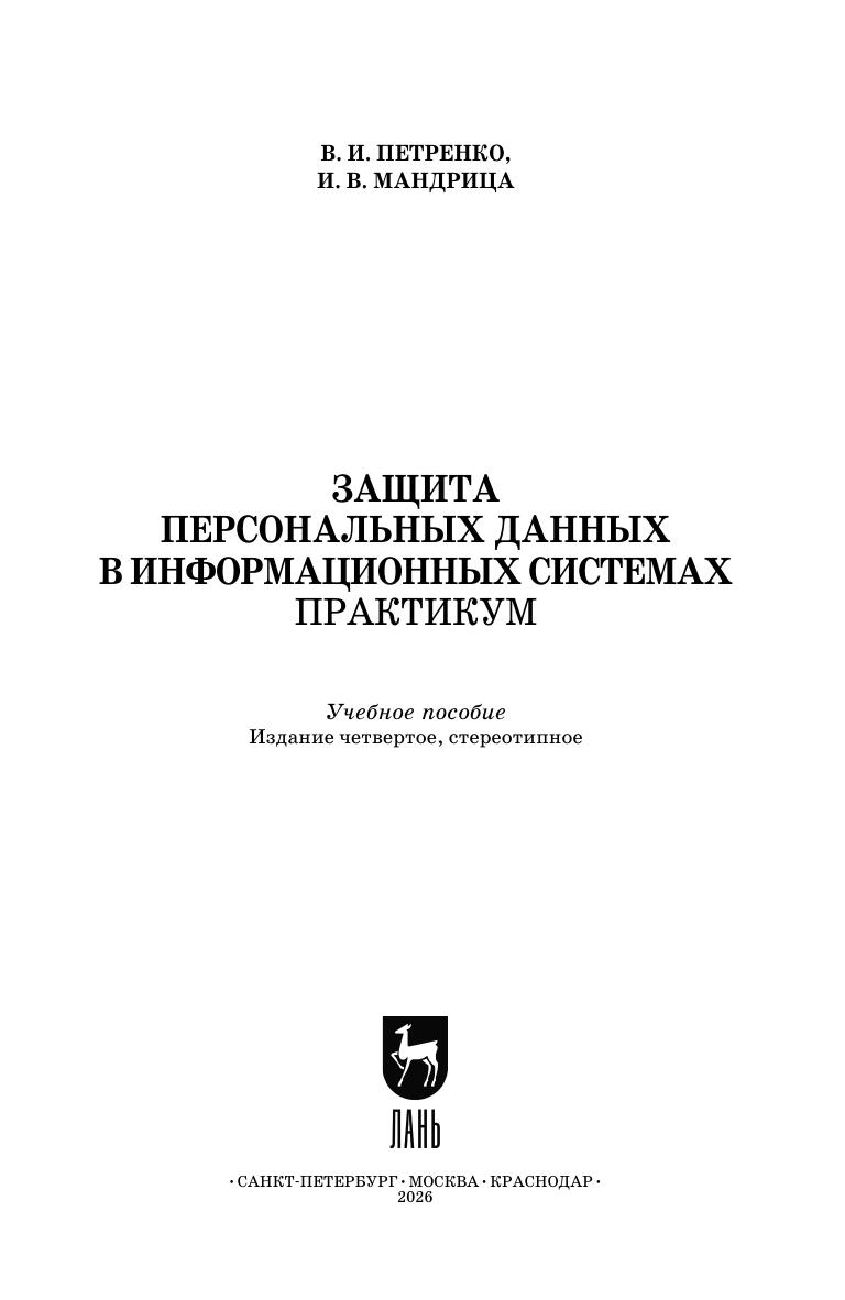 В практикуме приводятся краткие теоретические сведения и методические пояснения и рекомендации по выполнению практических занятий по учебной дисциплине «Защита персональных данных в информационных системах», а также порядок их оформления. Практикум предназначен для студентов средних профессиональных учреждений, обучающихся по специальностям направлений подготовки «Информационная безопасность» и «Информатика и вычислительная техника». Соответствует современным требованиям Федерального государственного образовательного стандарта среднего профессионального образования и профессиональным квалификационным требованиям.