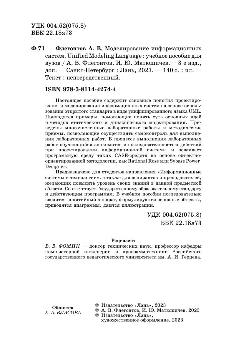 Настоящее пособие содержит основные понятия проектирования и моделирования информационных систем на основе использования открытого стандарта в виде унифицированного языка UML. Приводятся примеры, помогающие понять суть основных идей и методов статического и динамического моделирования. Приведены многочисленные лабораторные работы и методические приемы, позволяющие осуществлять самоконтроль для выполнения лабораторных работ. В процессе выполнения лабораторных работ обучающийся знакомится с последовательностью действий при проектировании информационной системы и осваивает программную среду таких CASE-средств на основе объектно-ориентированной методологии, как Rational Rose или Sybase Power Designer. Предназначено для студентов направления «Информационные системы и технологии», а также для аспирантов и преподавателей, желающих повысить уровень своих знаний в данной предметной области. Соответствует государственному образовательному стандарту и действующим программам. В учебном пособии последовательно вводится понятийный аппарат, формулируются основные объекты, приводятся диаграммы, даются иллюстрации.