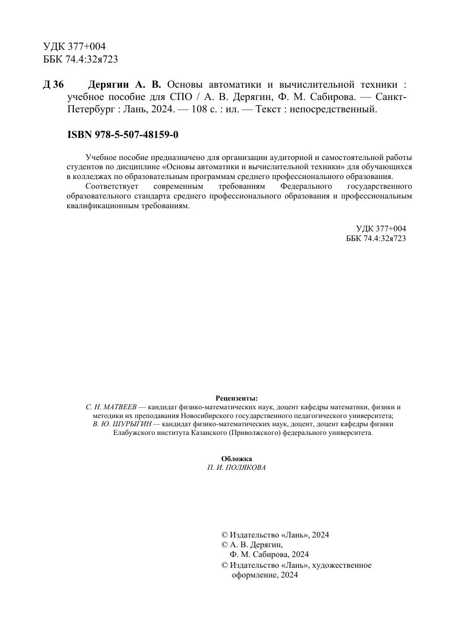 Учебное пособие предназначено для организации аудиторной и самостоятельной работы студентов по дисциплине «Основы автоматики и вычислительной техники» для обучающихся в колледжах по образовательным программам среднего профессионального образования. Соответствует современным требованиям Федерального государственного образовательного стандарта среднего профессионального образования и профессиональным квалификационным требованиям.