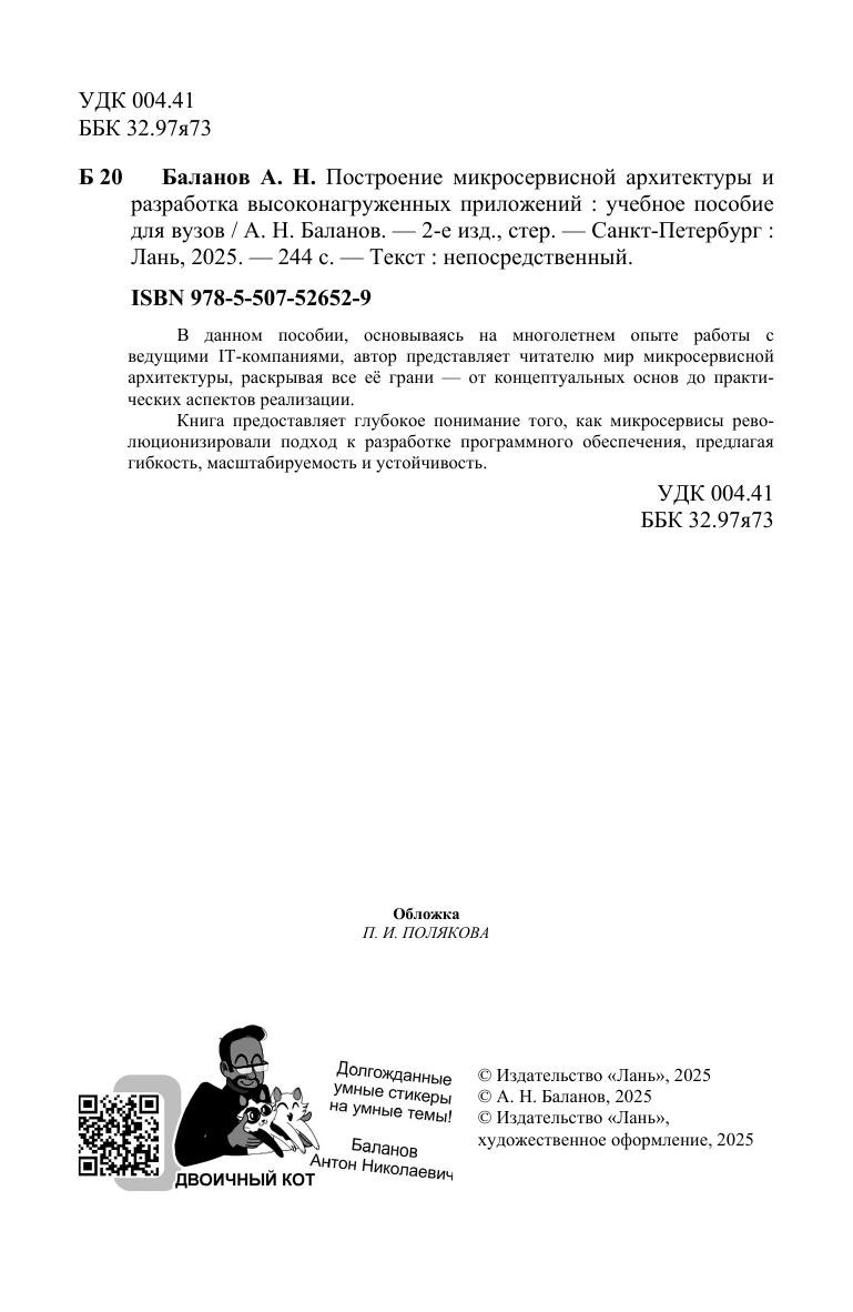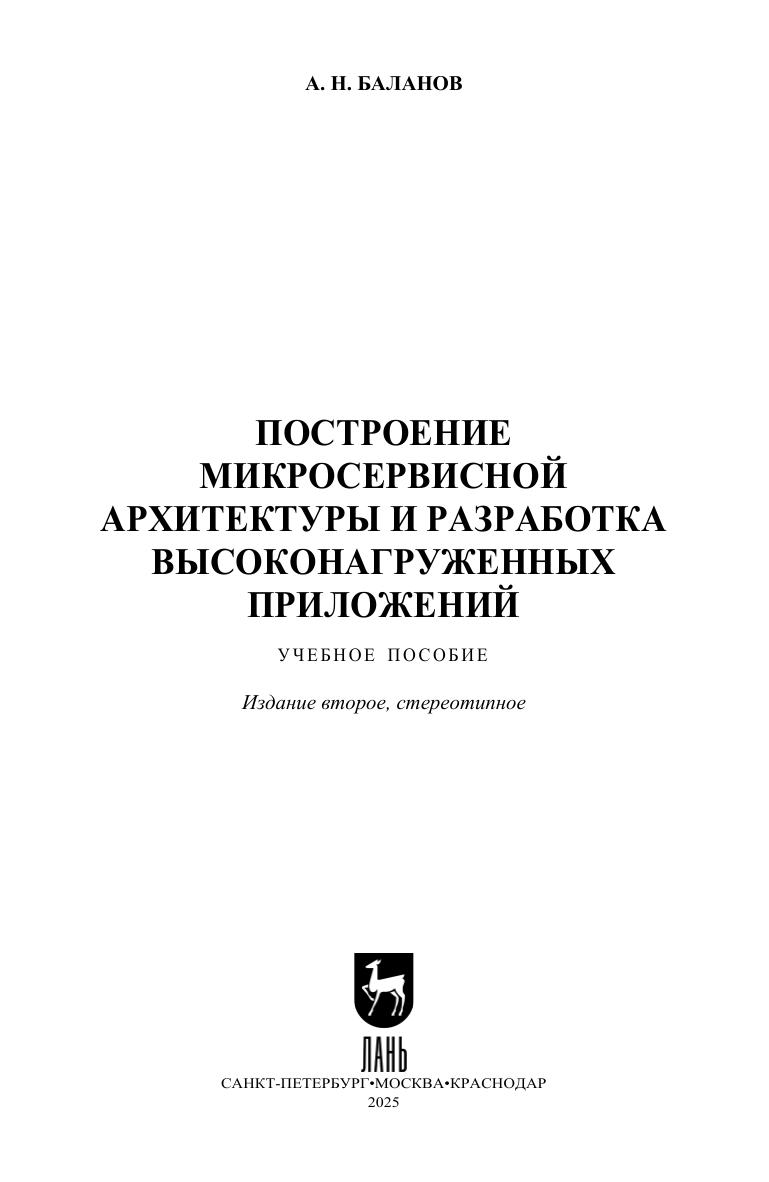 Построение микросервисной архитектуры и разработка высоконагруженных приложений Баланов А. Н.