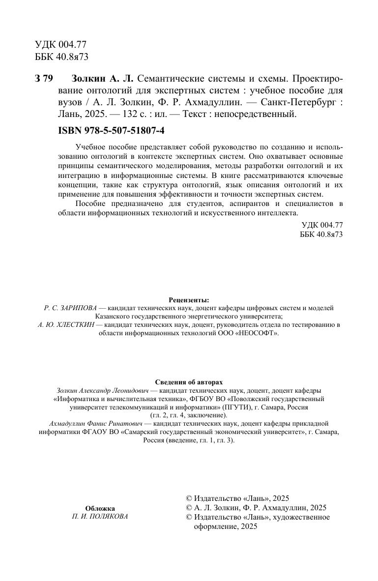 Учебное пособие представляет собой руководство по созданию и использованию онтологий в контексте экспертных систем. Оно охватывает основные принципы семантического моделирования, методы разработки онтологий и их интеграцию в информационные системы. В книге рассматриваются ключевые концепции, такие как структура онтологий, язык описания онтологий и их применение для повышения эффективности и точности экспертных систем. Пособие предназначено для студентов, аспирантов и специалистов в области информационных технологий и искусственного интеллекта.