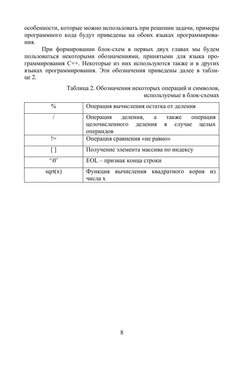 В пособии будут рассмотрены базовые приемы алгоритмизации, которые являются основой для решения более сложных задач программирования: проиллюстрированы основные понятия алгоритмизации (ветвление, циклы различных видов), базовые алгоритмы работы с основными структурами данных (массивами, символьными строками, матрицами). Отдельные главы учебного пособия посвящены структурированию программ (созданию пользовательских функций), а также работе с более сложными структурами данных (списками, деревьями, графами). Приведенные в учебном пособии примеры программ написаны на языках программирования C++ и C#, которые на данный момент являются одними из самых популярных универсальных языков программирования. Соответствует современным требованиям Федерального государственного образовательного стандарта среднего профессионального образования и профессиональным квалификационным требованиям. Данное учебное пособие предназначено для обучающихся по направлениям группы «Информатика и вычислительная техника» среднего профессионального образования, начинающих изучать программирование.