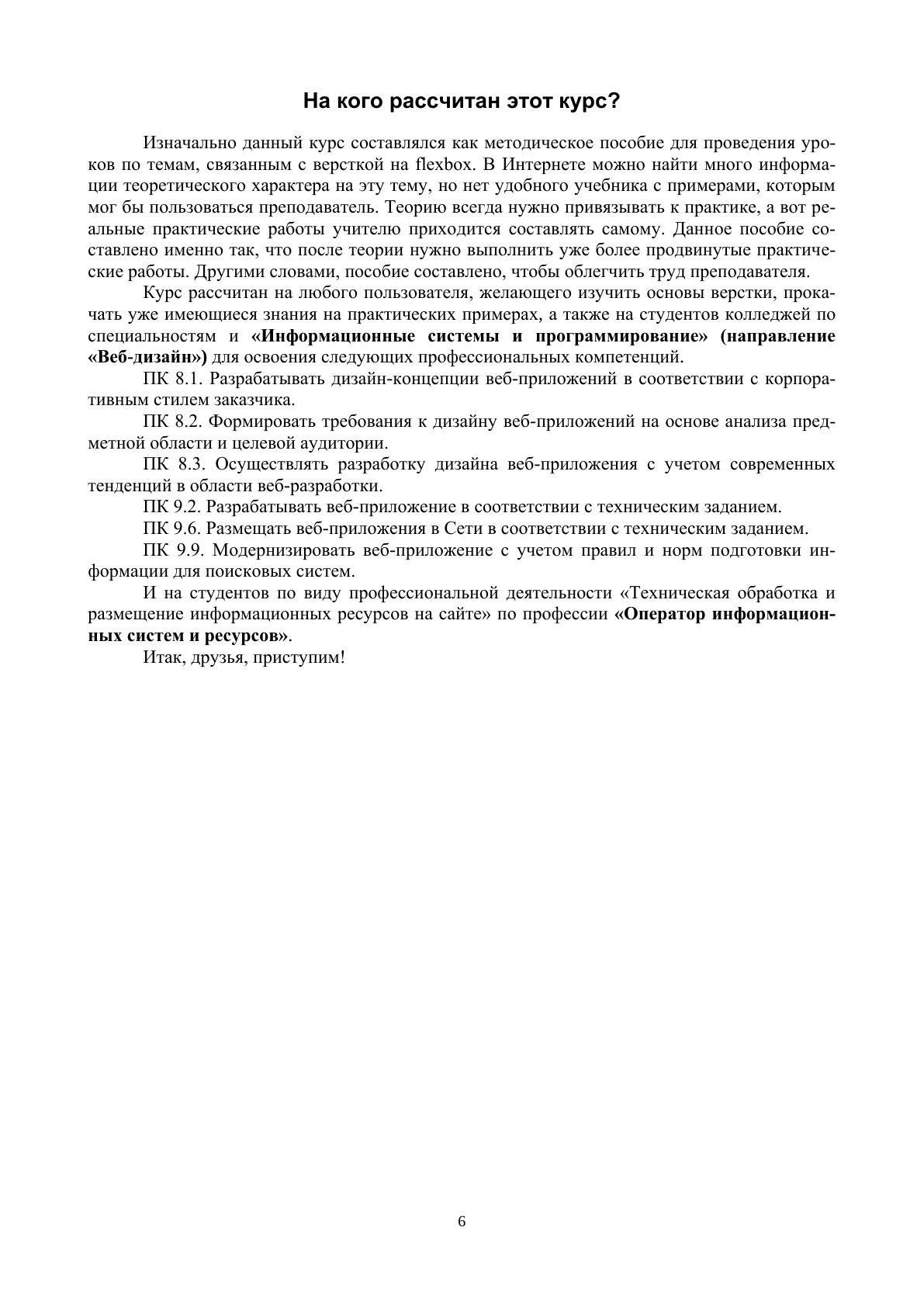 Данное учебное пособие подготовлено в соответствии с требованиями ФГОС СПО по специальностям укрупненной группы «Информатика и вычислительная техника» и посвящено технологии Flexbox верстки сайтов, которая позволяет гибко управлять положением элементов и настраивать автоматическое выравнивание и распределение flex-элементов по осям. Также Flex отлично подходит для легкой адаптивности сайта, создания «резиновой» верстки, когда размеры элементов меняются в зависимости от параметров экрана. Начинающим веб-разработчикам стоит научиться работать именно в Flexbox, а потом перейти к CSS Grid. Знание этих двух технологий поможет сильно сократить время на верстку макета практически любого уровня сложности. Данное пособие носит практическую направленность. За теорией идут практические задания для укрепления полученных знаний. К книге прилагаются дополнительные материалы, доступные в электронной библиотечной системе «Лань» по ссылке или QR-коду, указанным ниже.
