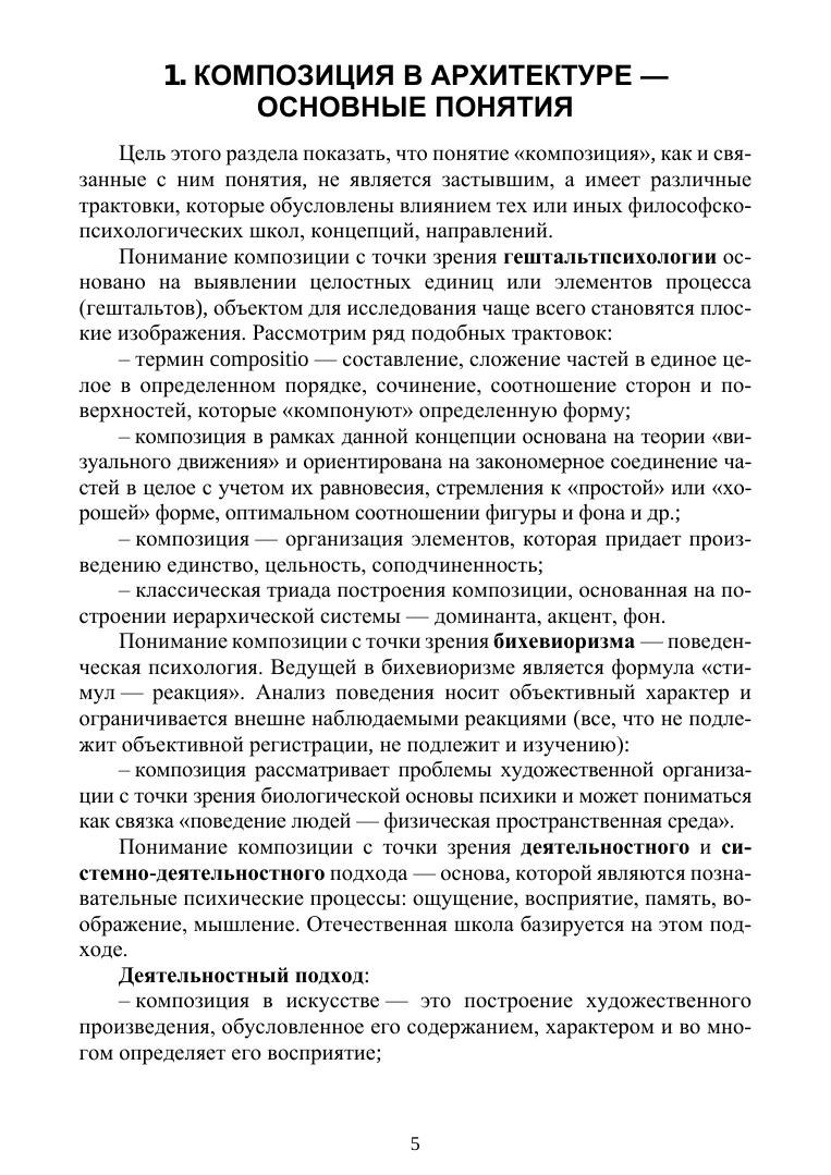 В пособии изложены базовые представления о композиции в архитектуре: история развития, основные термины, виды композиции, композиционные средства. Даны примеры композиционного моделирования и макетирования при разработке архитектурных проектов. Изложена методика композиционного подхода к учебному архитектурному проектированию несложных объектов. Учебное пособие предназначено для студентов вузов, обучающихся по направлениям «Архитектура», «Градостроительство», «Дизайн архитектурной среды».