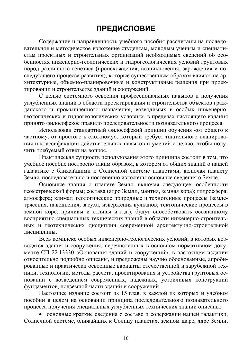 В учебном пособии приведены основные классификационные типы инженерно-геологических условий и грунтов оснований, которые проявляют особые строительные свойства (просадочные, набухающие, засолённые, при действии агрессивной среды, насыпные, карстовые, подрабатываемые территории, сейсмические районы, динамические воздействия и фундаменты, повышенные и высокие температуры, слабые водонасыщенные и др.). Для возведения надёжных и устойчивых зданий и сооружений на таких грунтовых основаниях предлагаются принципиальные, современные инженерно-технические и технологические решения по устройству искусственных оснований и конструктивных типов фундаментов. Изложены основные условия, правила выбора и общие принципы расчёта, конструирования и проектирования оснований и фундаментов при выполнении курсовых и дипломных проектов, выпускных квалификационных работ, диссертаций. Учебное пособие предназначено для студентов, аспирантов, молодых ученых архитектурно-строительных специальностей высших учебных заведений, а также может быть полезным при реальном проектировании оснований и фундаментов зданий и сооружений в особых инженерно-геологических условиях.