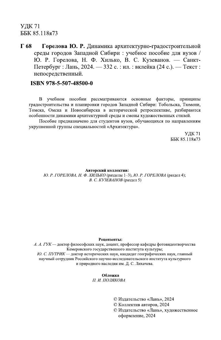Динамика архитектурно-градостроительной среды городов Западной Сибири Горелова Ю. Р., Хилько Н. Ф., Кузеванов В. С.
