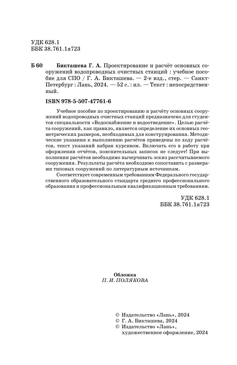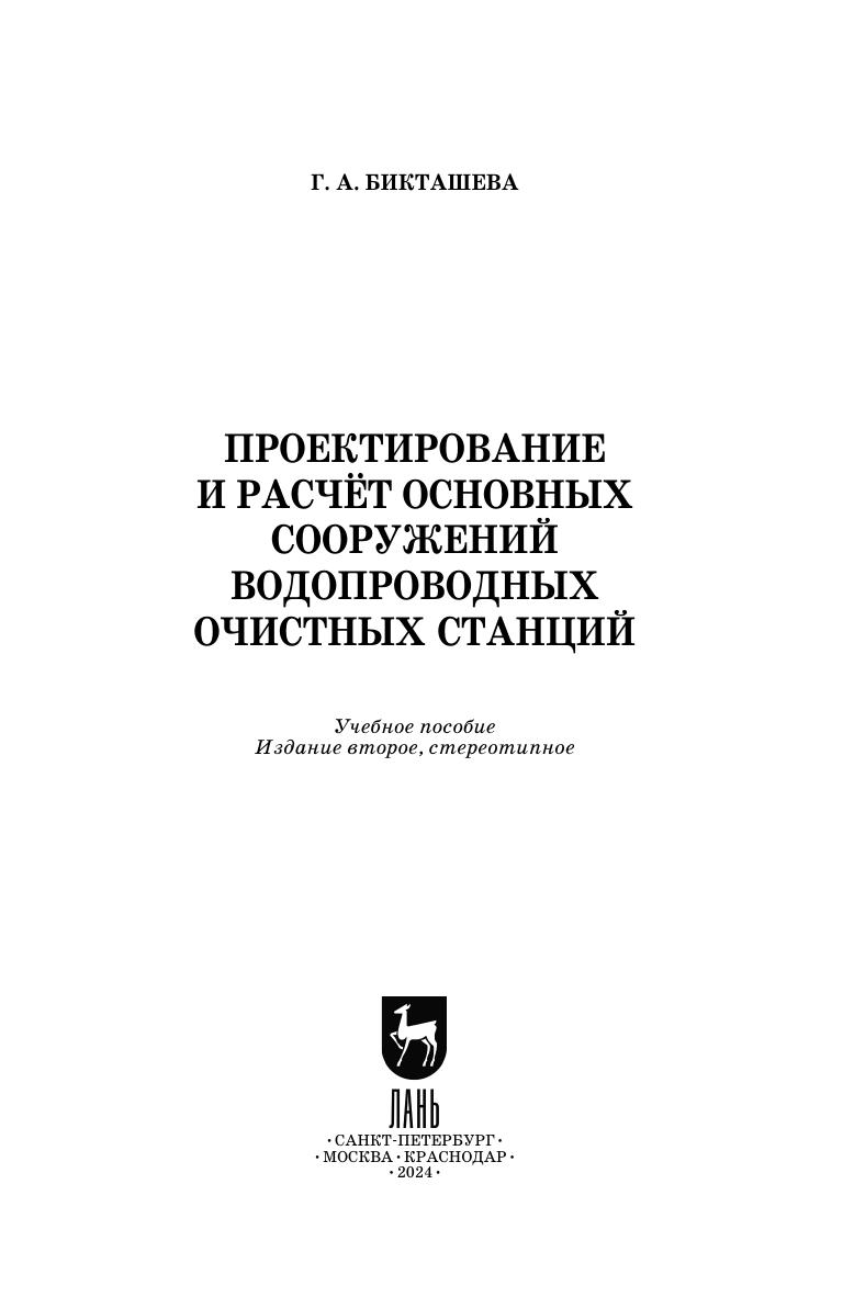 Учебное пособие по проектированию и расчёту основных сооружений водопроводных очистных станций предназначено для студентов специальности «Водоснабжение и водоотведение». Целью расчёта сооружений, как правило, является определение их основных геометрических размеров, необходимых для конструирования. Методические указания к выполнению расчётов приведены по ходу расчётов, текст указаний набран курсивом. Включать его в работу при оформлении отчётов, пояснительных записок не следует! При выполнении расчётов необходимо вычерчивать эскиз рассчитываемого сооружения. Результаты расчёта необходимо сопоставить с размерами типовых сооружений по литературным источникам. Соответствует современным требованиям Федерального государственного образовательного стандарта среднего профессионального образования и профессиональным квалификационным требованиям.