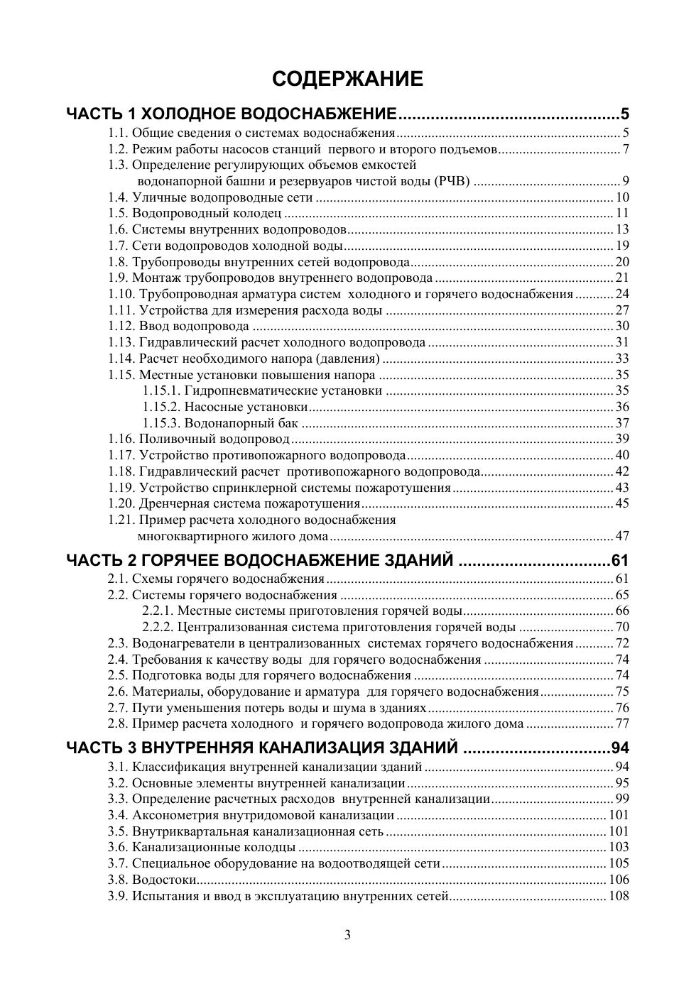 Представлены основные сведения о водоснабжении и водоотведении населенных пунктов. Рассмотрены вопросы устройства внутренних систем холодного, противопожарного, горячего водопроводов, а также сетей водоотведения бытовых и дождевых сточных вод. Приведены примеры решений по устройству и расчету рассматриваемых инженерных сетей. Описаны процедуры монтажа, испытаний и ввода в эксплуатацию сетей водоснабжения и водоотведения. Учтены требования действующих законов, остановлений, стандартов, нормативов.