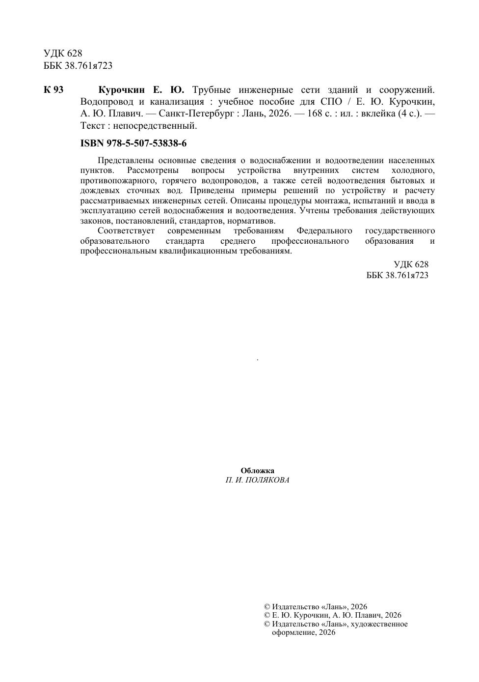 Трубные инженерные сети зданий и сооружений. Водопровод и канализация Курочкин Е. Ю., Плавич А. Ю.