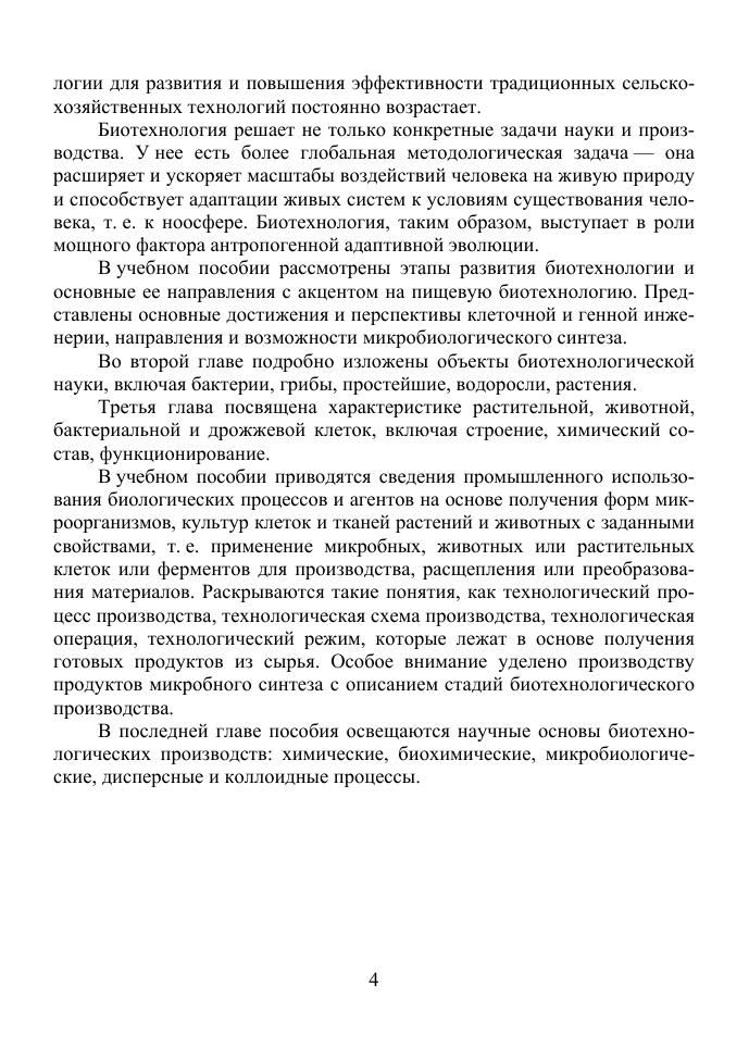 В учебном пособии рассмотрены этапы становления и основные направления биотехнологии, представлены объекты биотехнологии и характеристика растительной, животной, бактериальной и дрожжевой клеток, раскрываются такие понятия, как технологический процесс производства, технологическая схема производства, технологическая операция, технологический режим, рассматриваются общая биотехнологическая схема производства продуктов микробного синтеза, а также научные основы биотехнологических процессов. Пособие рекомендовано для учащихся учебных заведений системы СПО, обучающихся по профессиональному направлению «Промышленная экология и биотехнологии». Соответствует современным требованиям Федерального государственного образовательного стандарта среднего профессионального образования и профессиональным квалификационным требованиям.