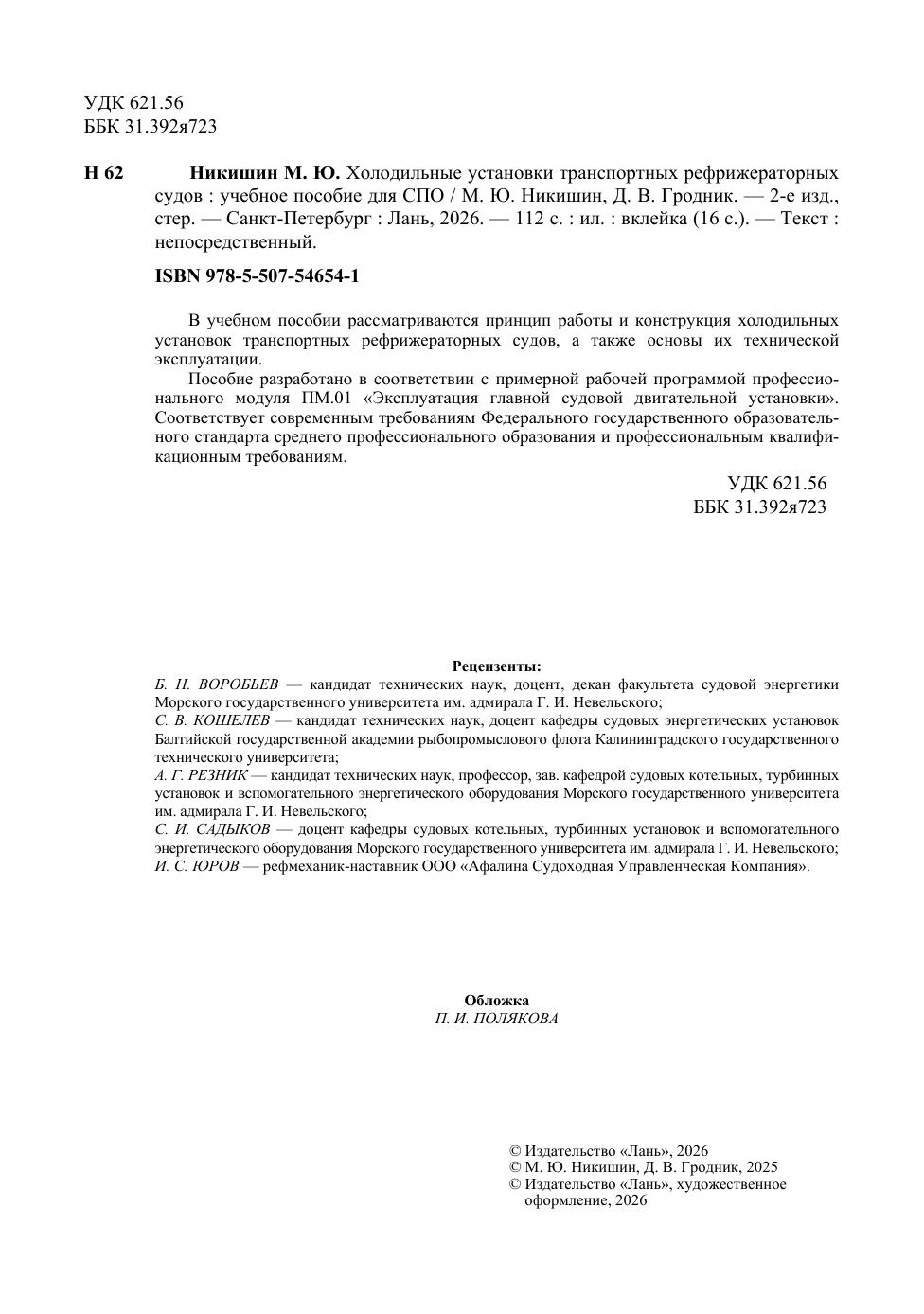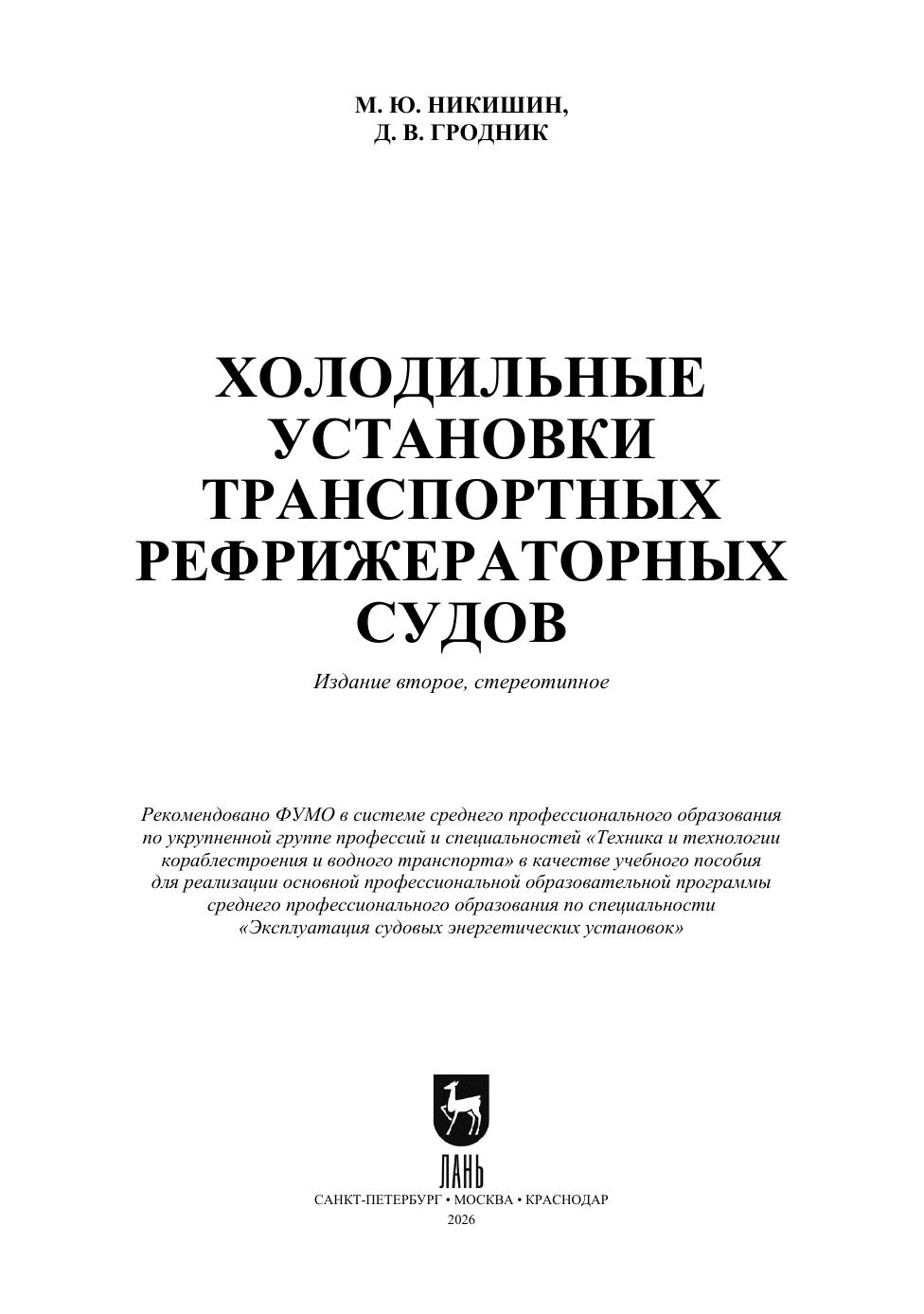 В учебном пособии рассматриваются принцип работы и конструкция холодильных установок транспортных рефрижераторных судов, а также основы их технической эксплуатации. Пособие разработано в соответствии с примерной рабочей программой профессионального модуля ПМ.01 «Эксплуатация главной судовой двигательной установки». Соответствует современным требованиям Федерального государственного образовательного стандарта среднего профессионального образования и профессиональным квалификационным требованиям.