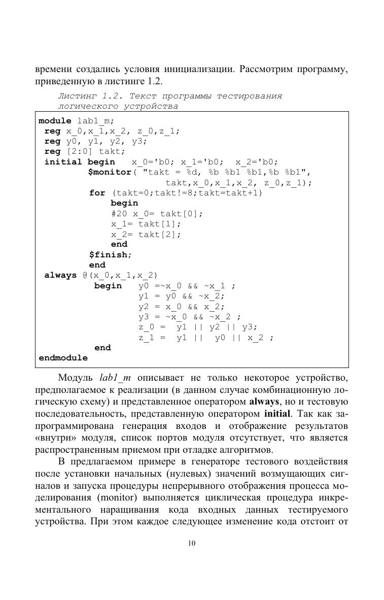 Представлены основные этапы проектирования дискретных устройств с использованием языков проектирования и верификации Verilog HDL и SystemVerilog: создание описания, моделирование, имплементация в реальную микросхему и отладка. Изложение сопровождается рекомендациями по практическому освоению различных этапов методики проектирования. Предназначено для студентов, обучающихся по направлению «Информатика и вычислительная техника» и других специальностей, связанных с разработкой цифровых устройств и систем.