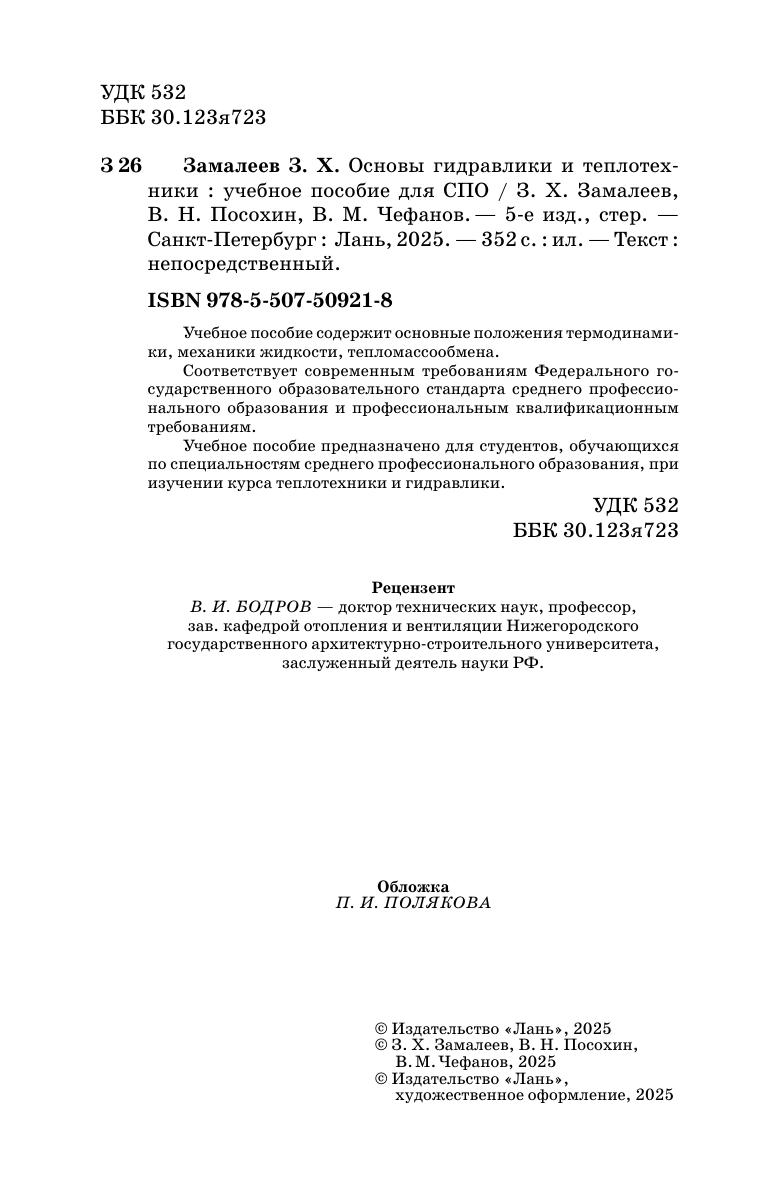 Учебное пособие содержит основные положения термодинамики, механики жидкости, тепломассообмена. Соответствует современным требованиям Федерального государственного образовательного стандарта среднего профессионального образования и профессиональным квалификационным требованиям. Учебное пособие предназначено для студентов, обучающихся по специальностям среднего профессионального образования, при изучении курса теплотехники и гидравлики.