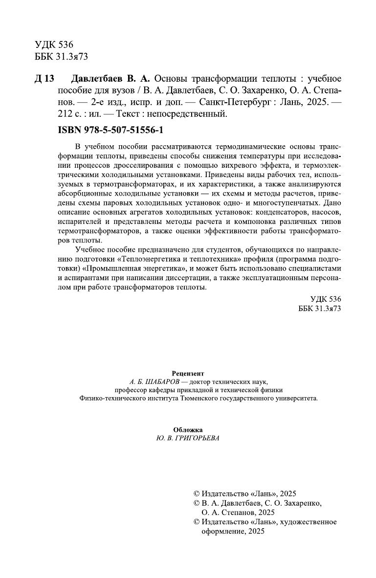 В учебном пособии рассматриваются термодинамические основы трансформации теплоты, приведены способы снижения температуры при исследовании процессов дросселирования с помощью вихревого эффекта, и термоэлектрическими холодильными установками. Приведены виды рабочих тел, используемых в термотрансформаторах, и их характеристики, а также анализируются абсорбционные холодильные установки — их схемы и методы расчетов, приведены схемы паровых холодильных установок одно- и многоступенчатых. Дано описание основных агрегатов холодильных установок: конденсаторов, насосов, испарителей и представлены методы расчета и компоновка различных типов термотрансформаторов, а также оценки эффективности работы трансформаторов теплоты. Учебное пособие предназначено для студентов, обучающихся по направлению подготовки «Теплоэнергетика и теплотехника» профиля (программа подготовки) «Промышленная энергетика», и может быть использовано специалистами и аспирантами при написании диссертации, а также эксплуатационным персоналом при работе трансформаторов теплоты.