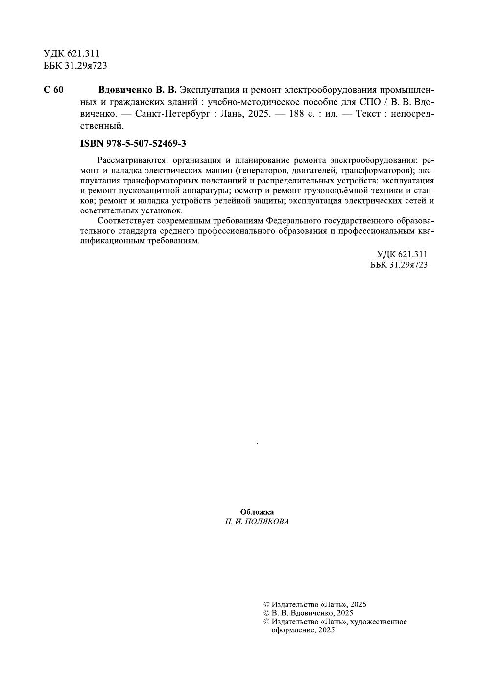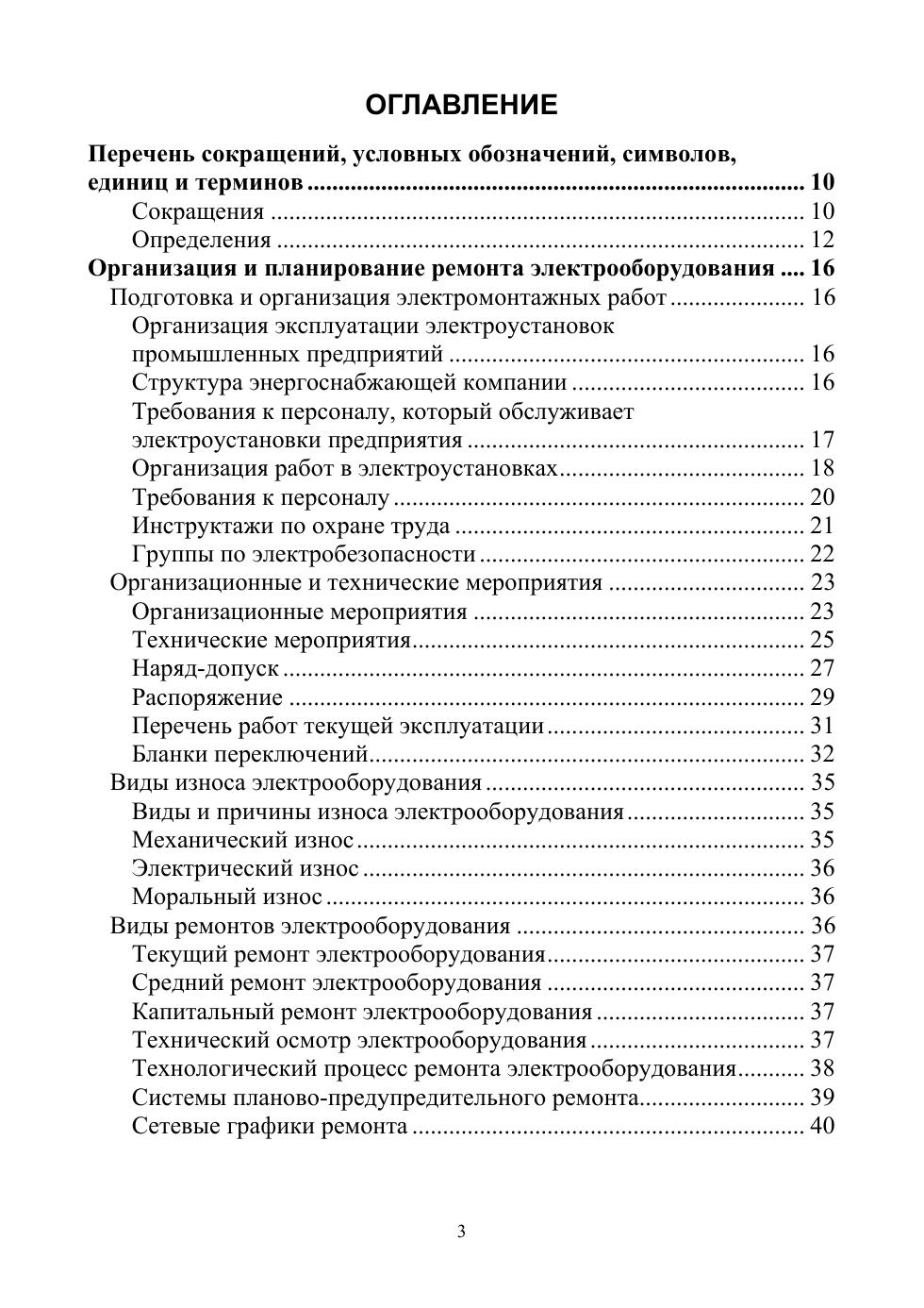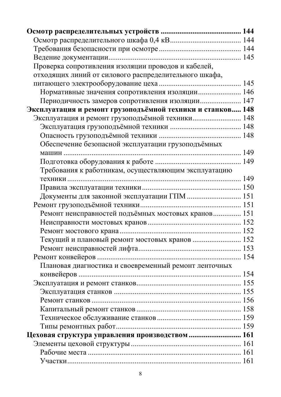 Рассматриваются: организация и планирование ремонта электрооборудования, ремонт и наладка электрических машин (генераторов, двигателей, трансформаторов), эксплуатация трансформаторных подстанций и распределительных устройств, эксплуатация и ремонт пускозащитной аппаратуры, осмотр и ремонт грузоподъёмной техники и станков, ремонт и наладка устройств релейной защиты, эксплуатация электрических сетей и осветительных установок. Соответствует современным требованиям Федерального государственного обра-зовательного стандарта среднего профессионального образования и профессиональным квалификационным требованиям.