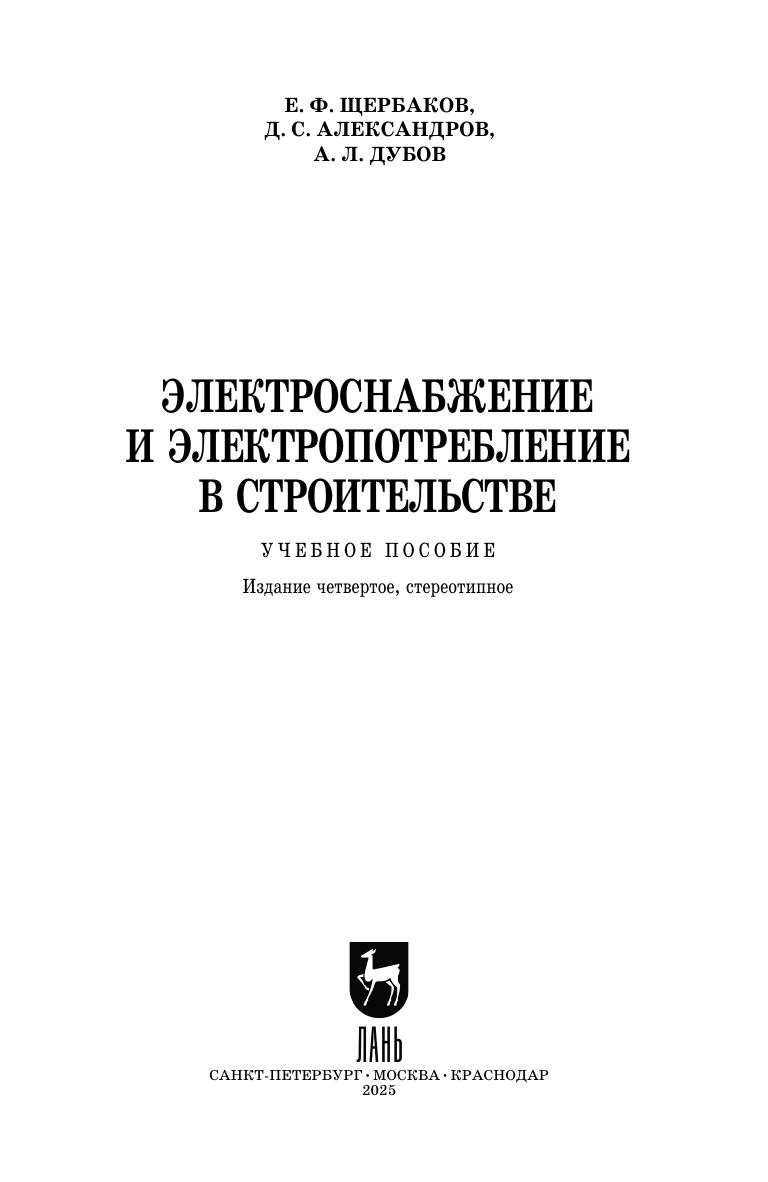 Рассмотрены вопросы электроснабжения и электропотребления на объектах строительства, применения электрической энергии в строительстве. Приведены сведения об электрических нагрузках и методах их расчета, распределении электрической энергии. Описаны конструкции электрических сетей и подстанций. Анализируется выбор электрооборудования в системах электроснабжения, принципы и методы расчета режимов электрических сетей, компенсации реактивной мощности, защиты и автоматики в системах электроснабжения, качество электрической энергии и надежности электроснабжения, режимы электропотребления. Соответствует современным требованиям Федерального государственного образовательного стандарта среднего профессионального образования и профессиональным квалификационным требованиям. Учебное пособие рекомендуется студентам колледжей, обучающихся по специальности «Монтаж, наладка и эксплуатация электрооборудования промышленных и гражданских зданий».