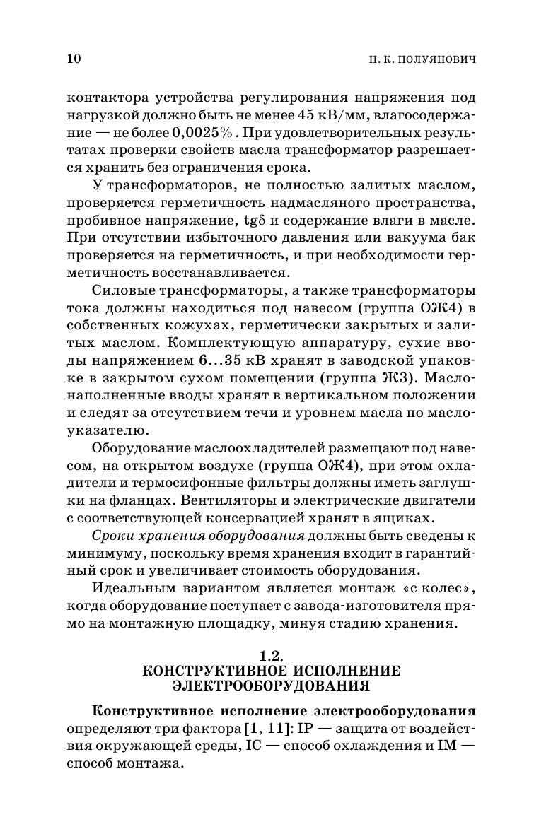 Рассмотрены вопросы, связанные с правильным хранением, монтажом и техническим обслуживанием электрических машин и аппаратов, трансформаторов, распределительных электрических сетей, осветительных установок и электрической бытовой техники. Приведены порядок действия, способы выполнения пусконаладочных работ электротехнического оборудования, организационная структура, а также методы планирования электроремонтного производства, типовые технологические процессы ремонта оборудования и краткая характеристика ремонтных испытаний. Особое внимание уделено устройству, конструкции и расчету различных заземляющих устройств. Даны образцы нормативных документов, регламентирующих завершение монтажных, электромонтажных, пусконаладочных и ремонтных работ. Издание соответствует современным требованиям Федерального государственного образовательного стандарта среднего профессионального образования и профессиональным квалификационным требованиям. Учебное пособие рекомендуется студентам колледжей, обучающихся по специальностям «Монтаж, наладка и эксплуатация электрооборудования промышленных и гражданских зданий», «Электрические машины и аппараты», «Техническая эксплуатация и обслуживание электрического и электромеханического оборудования».