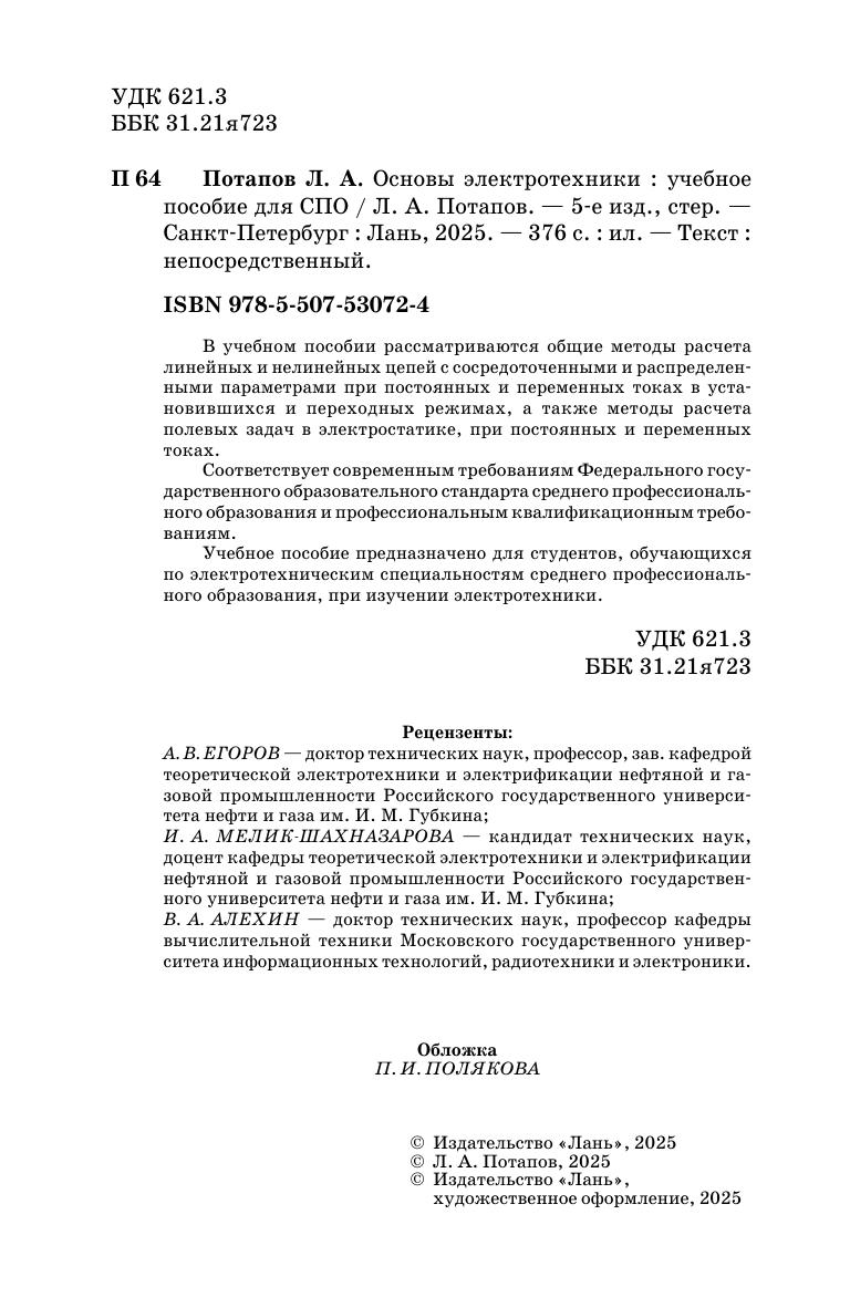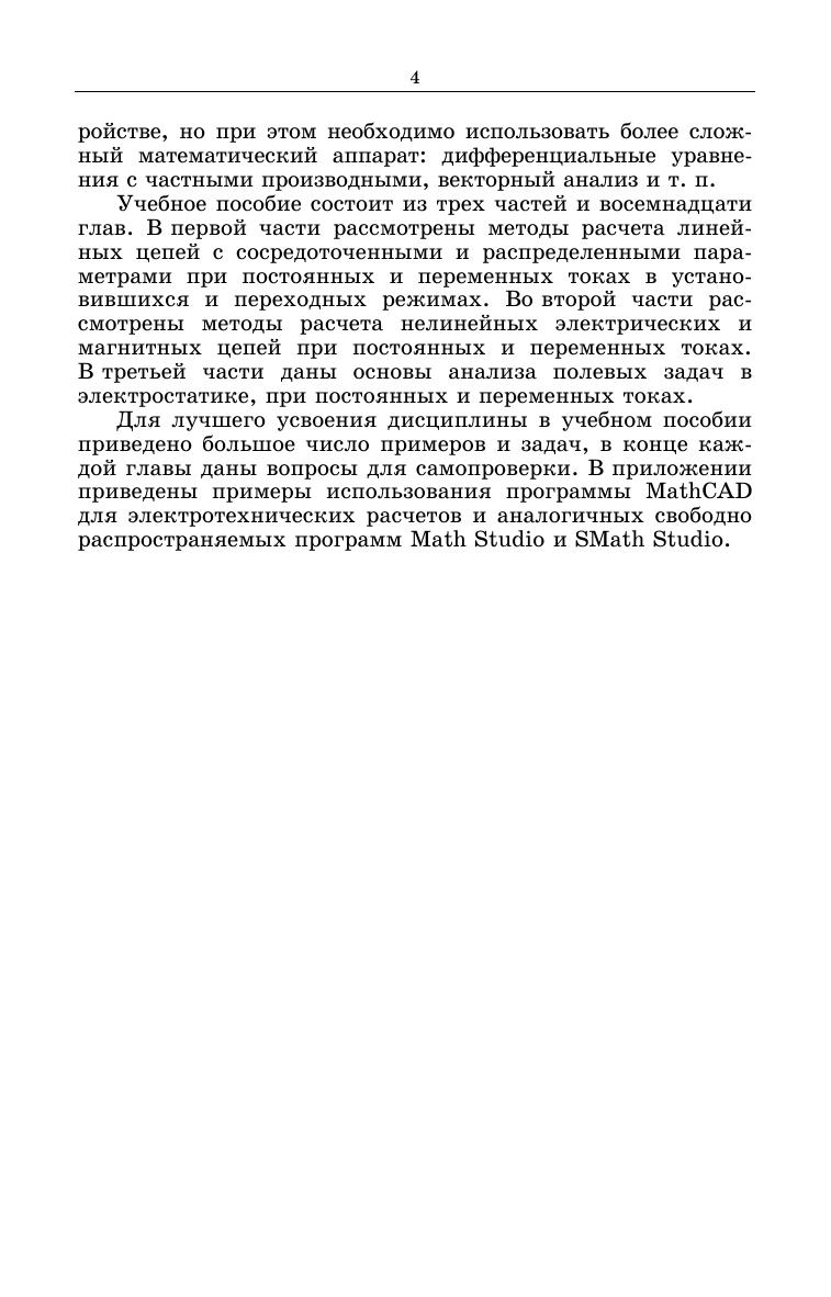 В учебном пособии рассматриваются общие методы расчета линейных и нелинейных цепей с сосредоточенными и распределенными параметрами при постоянных и переменных токах в установившихся и переходных режимах, а также методы расчета полевых задач в электростатике, при постоянных и переменных токах. Соответствует современным требованиям Федерального государственного образовательного стандарта среднего профессионального образования и профессиональным квалификационным требованиям. Учебное пособие предназначено для студентов, обучающихся по электротехническим специальностям среднего профессионального образования, при изучении электротехники.