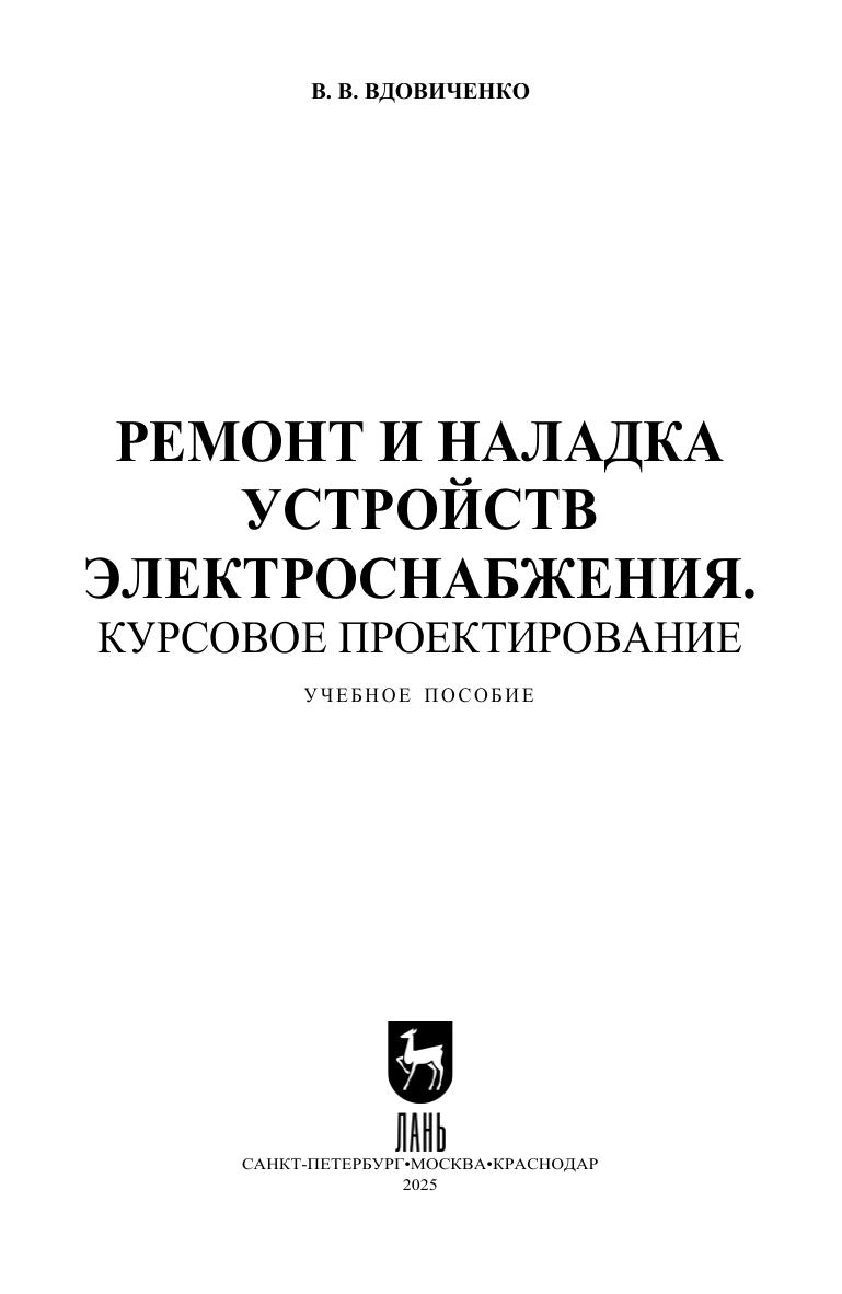 Ремонт и наладка устройств электроснабжения. Курсовое проектирование Вдовиченко В. В.