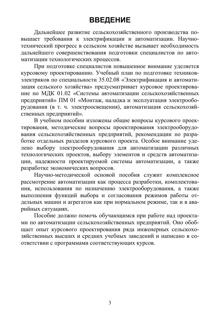 В учебном пособии по выполнению курсового проекта изложены сведения о курсовом проектировании по автоматизации сельскохозяйственного производства, приведены методические указания по обоснованию и выбору объекта автоматизации, разработке функционально-технологической схемы объекта автоматизации, разработке принципиальной электрической схемы, разработке системы автоматизации объекта, расчету и выбору элементов автоматизации, расчету основных показателей надежности схемы управления объектом, расчету технико-экономических показателей. Соответствует современным требованиям Федерального государственного образовательного стандарта среднего профессионального образования и профессиональным квалификационным требованиям. Учебное пособие предназначено для руководителей курсовым проектированием и студентов средних профессиональных учебных заведений, обучающихся по специальности «Электротехнические системы в агропромышленном комплексе (АПК)».