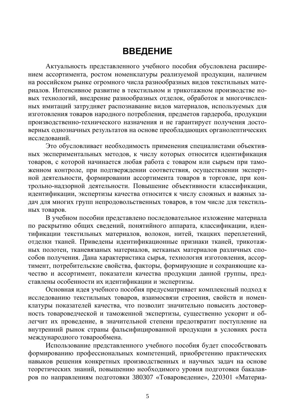 Использование представленного учебного пособия будет способствовать формированию профессиональных компетенций, приобретению практических навыков решения конкретных производственных и научных задач на основе теоретических знаний, повышению необходимого уровня подготовки бакалавров по направлениям подготовки «Товароведение», «Материаловедение и технологии материалов», специалистов, магистрантов по направлению «Управление качеством», владеющих новыми знаниями, умениями и навыками по своей специализации, способных к эффективной профессиональной деятельности, быстрой адаптации к меняющейся экономической ситуации. Учебное пособие будет полезно экспертам для идентификации и оценки качества материалов и изделий при таможенном контроле, а также для специалистов в области проектирования текстильных изделий и одежды в соответствии с профессиональным стандартом «Легкая и текстильная промышленность. Деятельность в области проектирования текстильных изделий и одежды».
