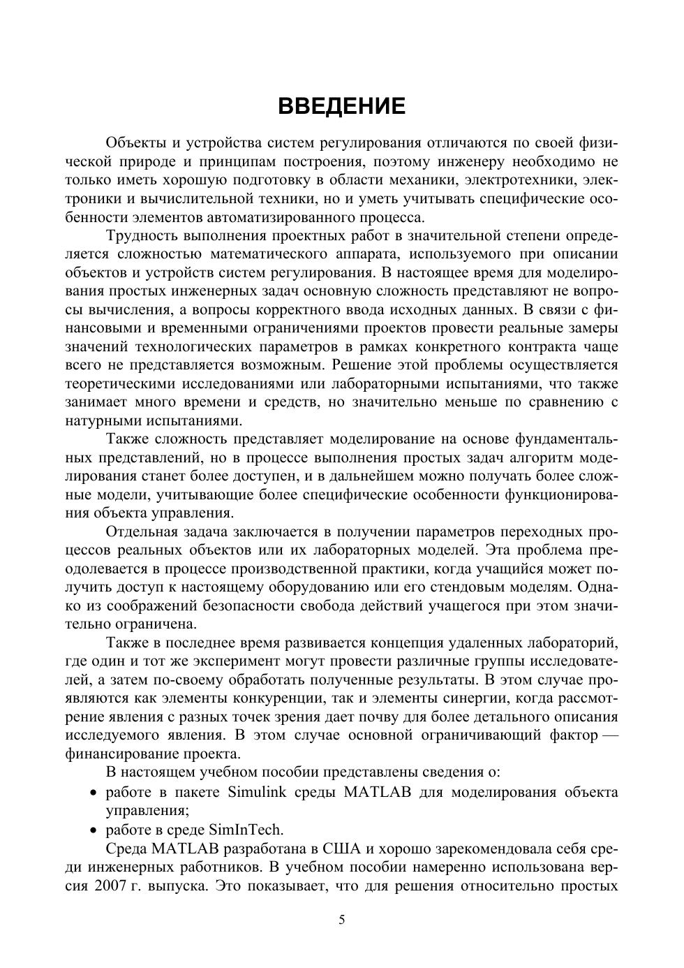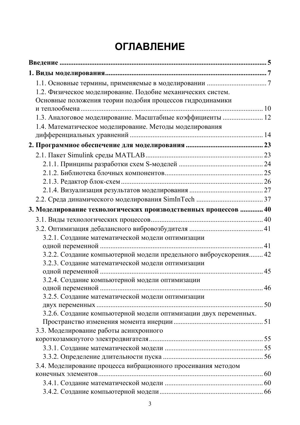 Приведены положения в области моделирования, даны рекомендации по работе с пакетом Simulink среды MATLAB и средой динамического моделирования SimInTech. Представлены примеры оптимизации конструкции дебаланса, моделирования работы асинхронного короткозамкнутого электродвигателя и поршневого пневмопривода. Произведена идентификация математической модели теплового объекта методом экспресс-идентификации и методом Алекперова. Определена передаточная функция математической модели, полученной методом Алекперова. Пособие предназначено для студентов направлений подготовки «Управление в технических системах», аспирантов специальности «Автоматизация и управление технологическими процессами и производствами (промышленность)», а также преподавателей и специалистов в области управления производственными процессами.