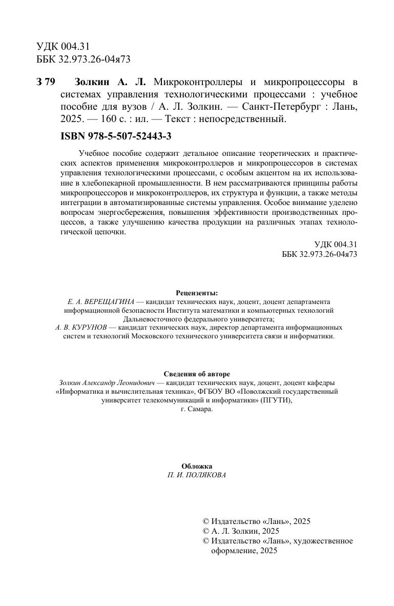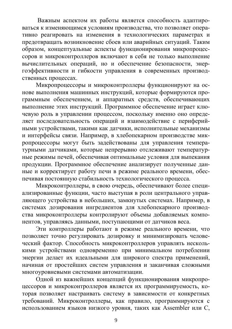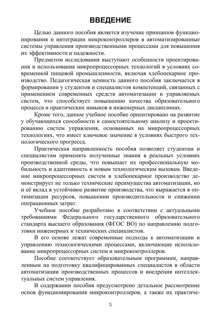 Учебное пособие содержит детальное описание теоретических и практических аспектов применения микроконтроллеров и микропроцессоров в системах управления технологическими процессами, с особым акцентом на их использование в хлебопекарной промышленности. В нем рассматриваются принципы работы микропроцессоров и микроконтроллеров, их структура и функции, а также методы интеграции в автоматизированные системы управления. Особое внимание уделено вопросам энергосбережения, повышения эффективности производственных процессов, а также улучшению качества продукции на различных этапах технологической цепочки.