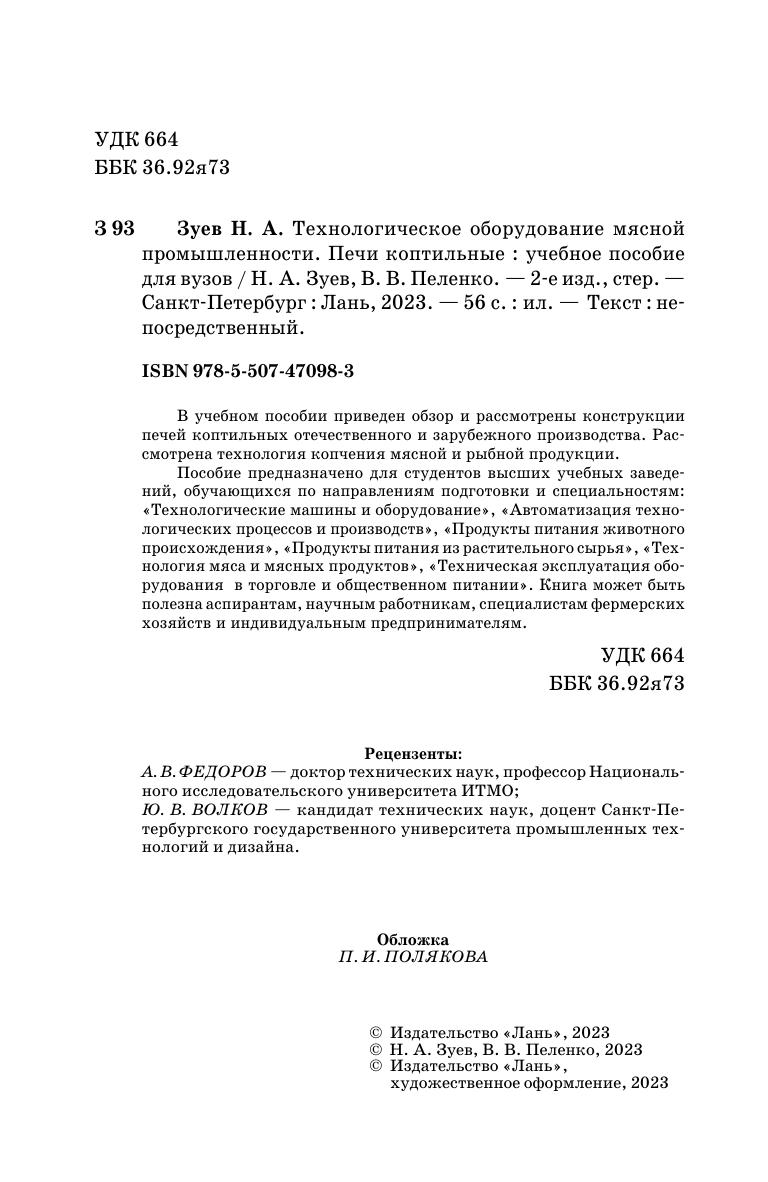 В учебном пособии приведен обзор и рассмотрены конструкции печей коптильных отечественного и зарубежного производства. Рассмотрена технология копчения мясной и рыбной продукции. Пособие предназначено для студентов средних специальных учебных заведений, обучающихся по направлениям подготовки и специальностям: «Технологические машины и оборудование». «Автоматизация технологических процессов и производств», «Продукты питания животного происхождения». «Продукты питания из растительного сырья», «Технология мяса и мясных продуктов». «Техническая эксплуатация оборудования в торговле и общественном питании». Книга может быть полезна аспирантам, научным работникам, специалистам фермерских хозяйств и индивидуальным предпринимателям.