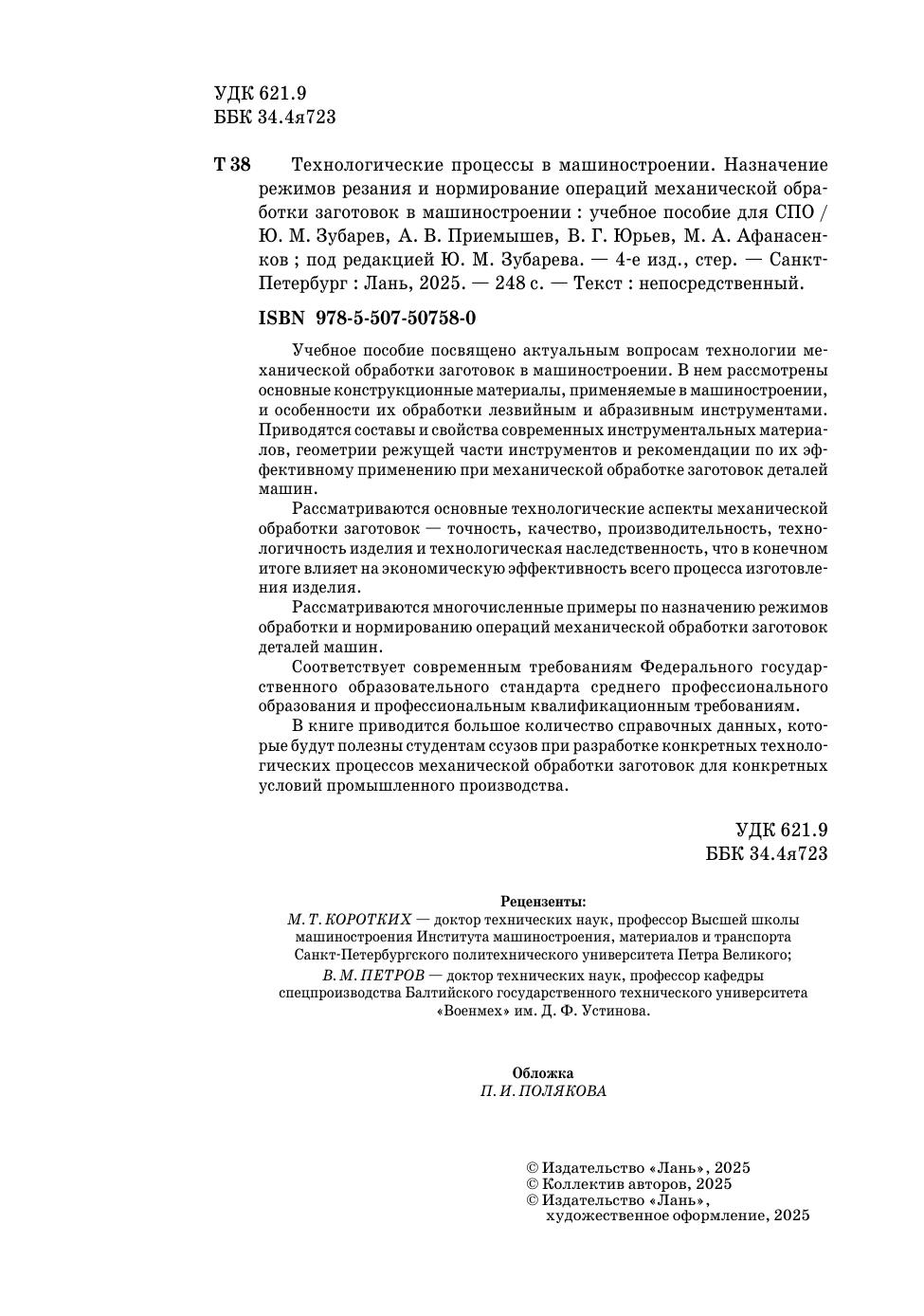 Учебное пособие посвящено актуальным вопросам технологии механической обработки заготовок в машиностроении. В нем рассмотрены основные конструкционные материалы, применяемые в машиностроении и особенности их обработки лезвийным и абразивным инструментами. Приводятся составы и свойства современных инструментальных материалов, геометрии режущей части инструментов и рекомендации по их эффективному применению при механической обработке заготовок деталей машин. Рассматриваются основные технологические аспекты механической обработки заготовок, - точность, качество, производительность, технологичность изделия и технологическая наследственность, что в конечном итоге влияет на экономическую эффективность всего процесса изготовления изделия. Рассматриваются многочисленные примеры по назначению режимов обработки и нормированию операций механической обработки заготовок деталей машин. В книге приводится большое количество справочных данных, которые будут полезны студентам ссузов при разработке конкретных технологических процессов механической обработки заготовок для конкретных условий промышленного производства. Соответствует современным требованиям Федерального государственного образовательного стандарта среднего профессионального образования и профессиональным квалификационным требованиям.