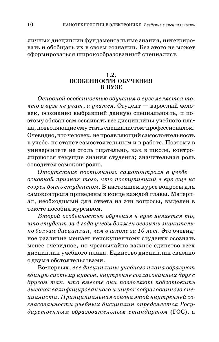 Пособие состоит из трех частей. Первая посвящена особенностям современного высшего технического образования и роли его фундаментальной составляющей в подготовке специалистов любого профиля. Вторая часть раскрывает логику развития электроники и важные вехи её истории, включая ламповую электронику, дискретную полупроводниковую и интегральную полупроводниковую электронику, а также ее переход в современную массовую кремниевую наноэлектронику. В третьей части книги описаны новые перспективные направления наноэлектроники и средства её инструментального, технологического и метрологического обеспечения. Учебное пособие предназначено для бакалавров, обучающихся по направлениям подготовки «Нанотехнологии и микросистемная техника», «Электроника и наноэлектроника», «Наноматериалы» и другим, имеющим нанотехнологическую направленность.