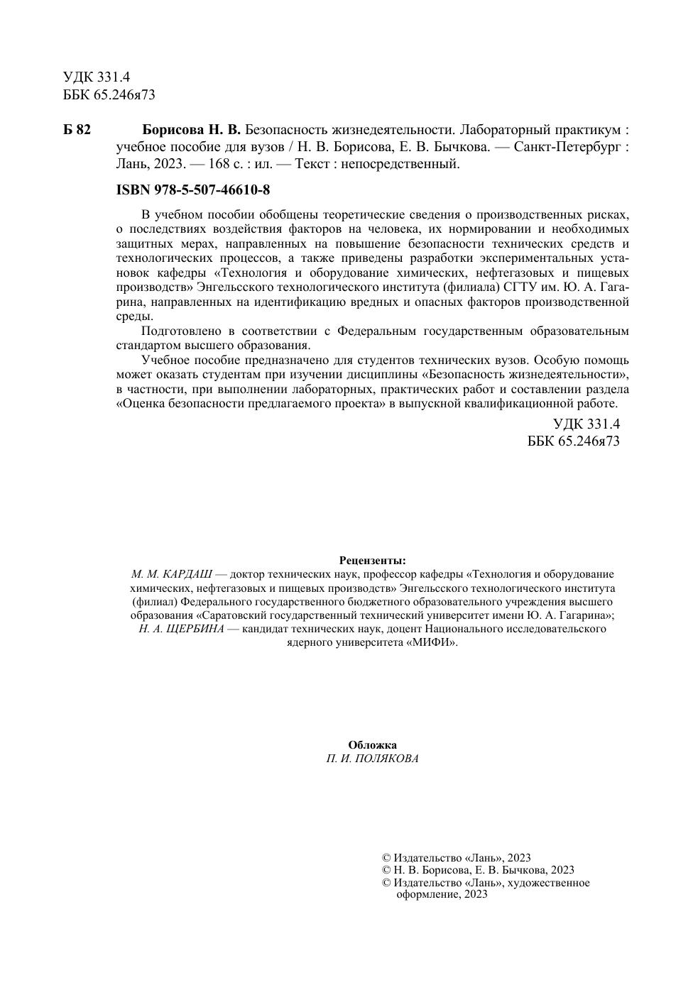В учебном пособии обобщены теоретические сведения о производственных рисках, о последствиях воздействия факторов на человека, их нормировании и необходимых защитных мерах, направленных на повышение безопасности технических средств и технологических процессов, а также приведены разработки экспериментальных установок кафедры «Технология и оборудование химических, нефтегазовых и пищевых производств» Энгельсского технологического института (филиала) СГТУ им. Ю. А. Гагарина, направленных на идентификацию вредных и опасных факторов производственной среды. Подготовлено в соответствии с Федеральным государственным образовательным стандартом высшего образования. Учебное пособие предназначено для студентов технических вузов. Особую помощь может оказать студентам при изучении дисциплины «Безопасность жизнедеятельности», в частности, при выполнении лабораторных, практических работ и составлении раздела «Оценка безопасности предлагаемого проекта» в выпускной квалификационной работе.